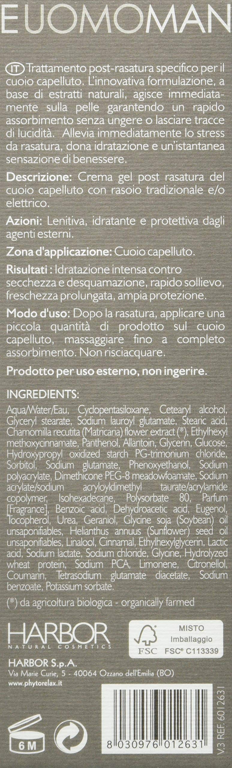 Product Description Phytorelax Laboratories Trattamento Testa Perfetta Linea Uomo Crema Post-Rasatura Cuoio Capelluto Trattamento post-rasatura specifico per il cuoio capelluto. The innovative formulation is based on the principles Naturally, immediately after the skin is guaranteed and quickly absorbed If you don't want to leave a trace of lucidity. Allevia immediately lo stress The rasatura, dona idratazione e un'istantanea sensazione di benessere. Modo To do this, apply a picture quantity to the product on the cuoio capelluto, massaggiare fino a completo assorbimento. Not risk-free. Formato Flacone da 75 ml. Instructions for use Apply cream after shaving