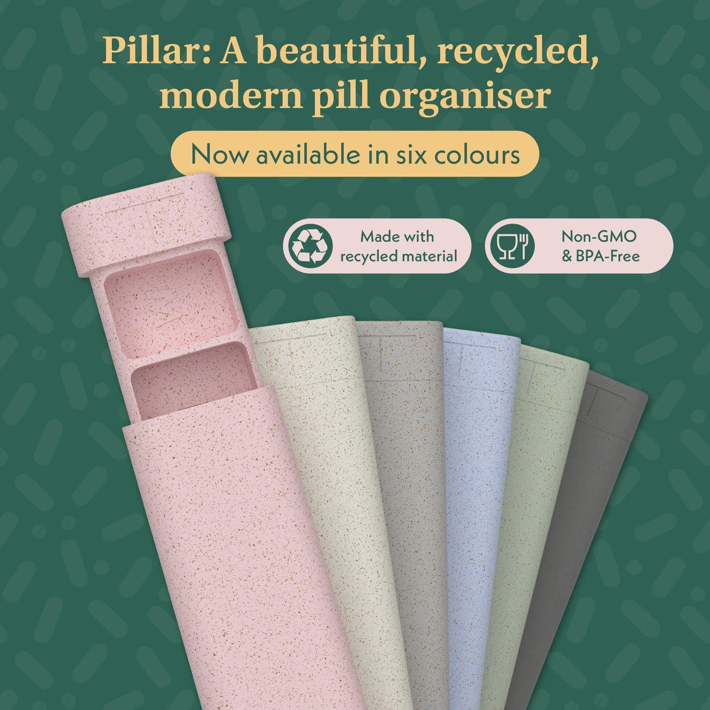 - Meet Pillar: Stylish UK-designed pill organizer with 7 daily compartments; Perfect for organizing medication, vitamins, and supplements; Aesthetic design; Compact size fits easily in purse or travel bag