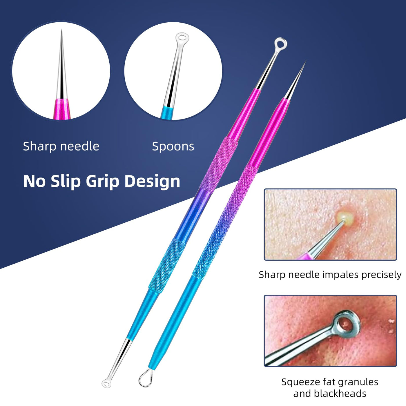 - Non-slip Handle Design: This blackhead extractor uses ergonomic design with antiskid design grip, which help you better control the pressure during use, ensure that each step is completed with exceptional control and precision.