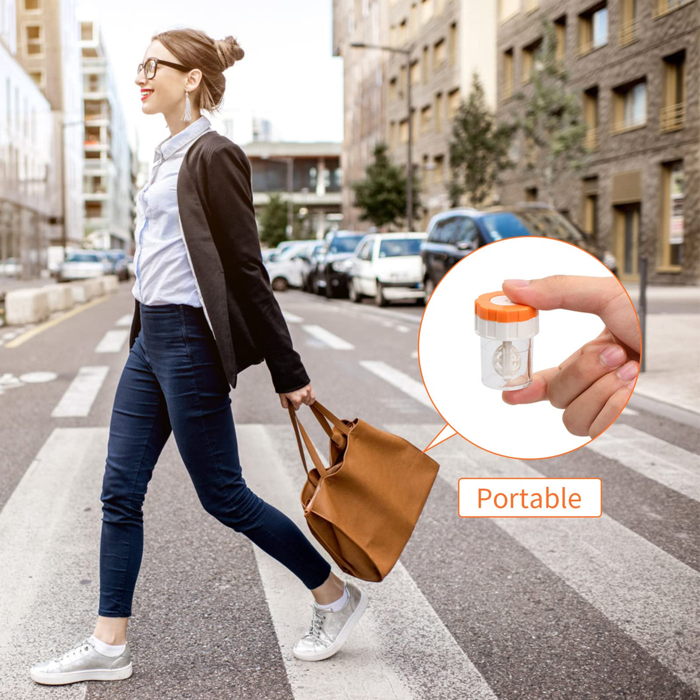 - [Easy to Use] Wash your hands before cleaning. First, place the contact lens in a small basket. Then pour the cleaning solution into the bottle and gently turn the button on the bottle cap to quickly clean the contact lens.