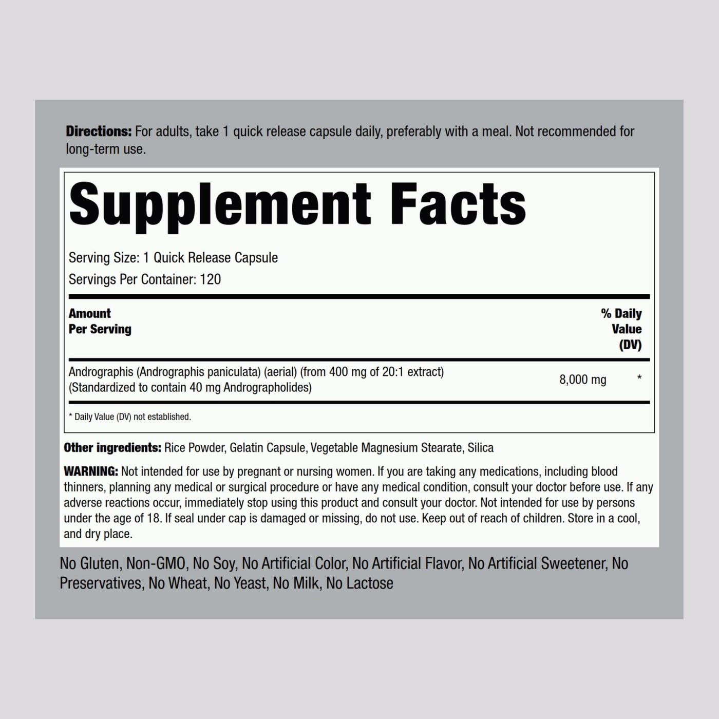 Piping Rock Andrographis Paniculata Extract | 8000 mg | 120 Capsules | Standardized Herbal Supplement | Non-GMO, Gluten Free