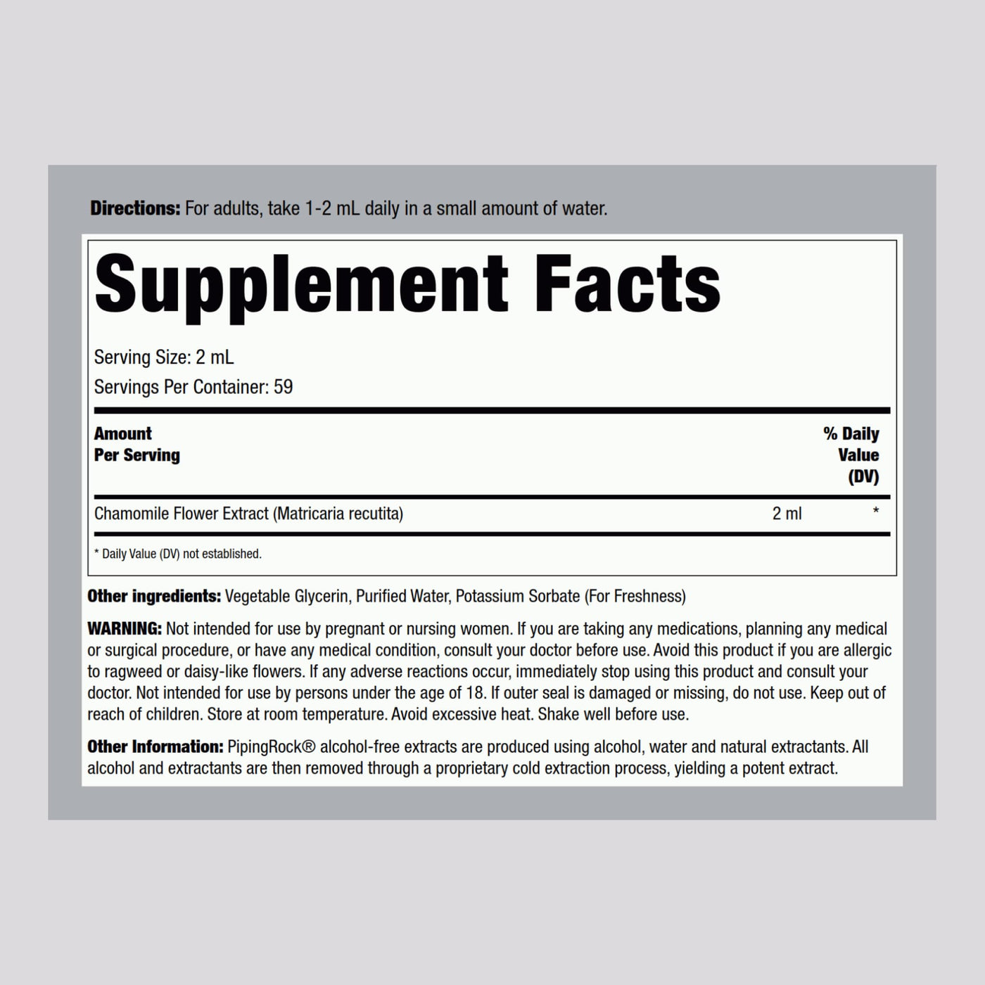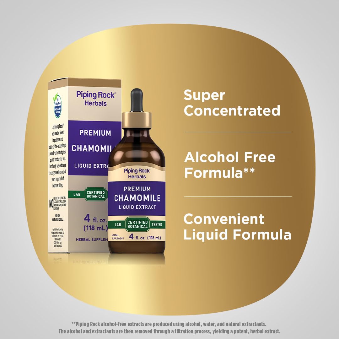 Piping Rock Chamomile Flower Extract Liquid Drops | 4 Fl Oz | Herb Tincture Supplement | Vegetarian, Non-GMO, Gluten Free