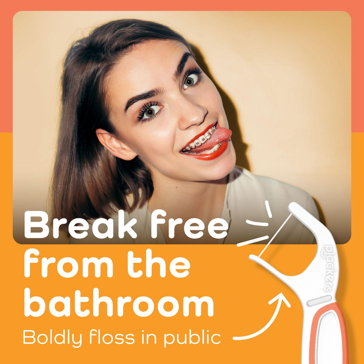 Plackers Orthopick Dental Floss Picks for Braces, Made with Super TufFloss, Soft Flexible Toothpick, Gentle on Braces, Orange, 144 Count (Pack of 4)