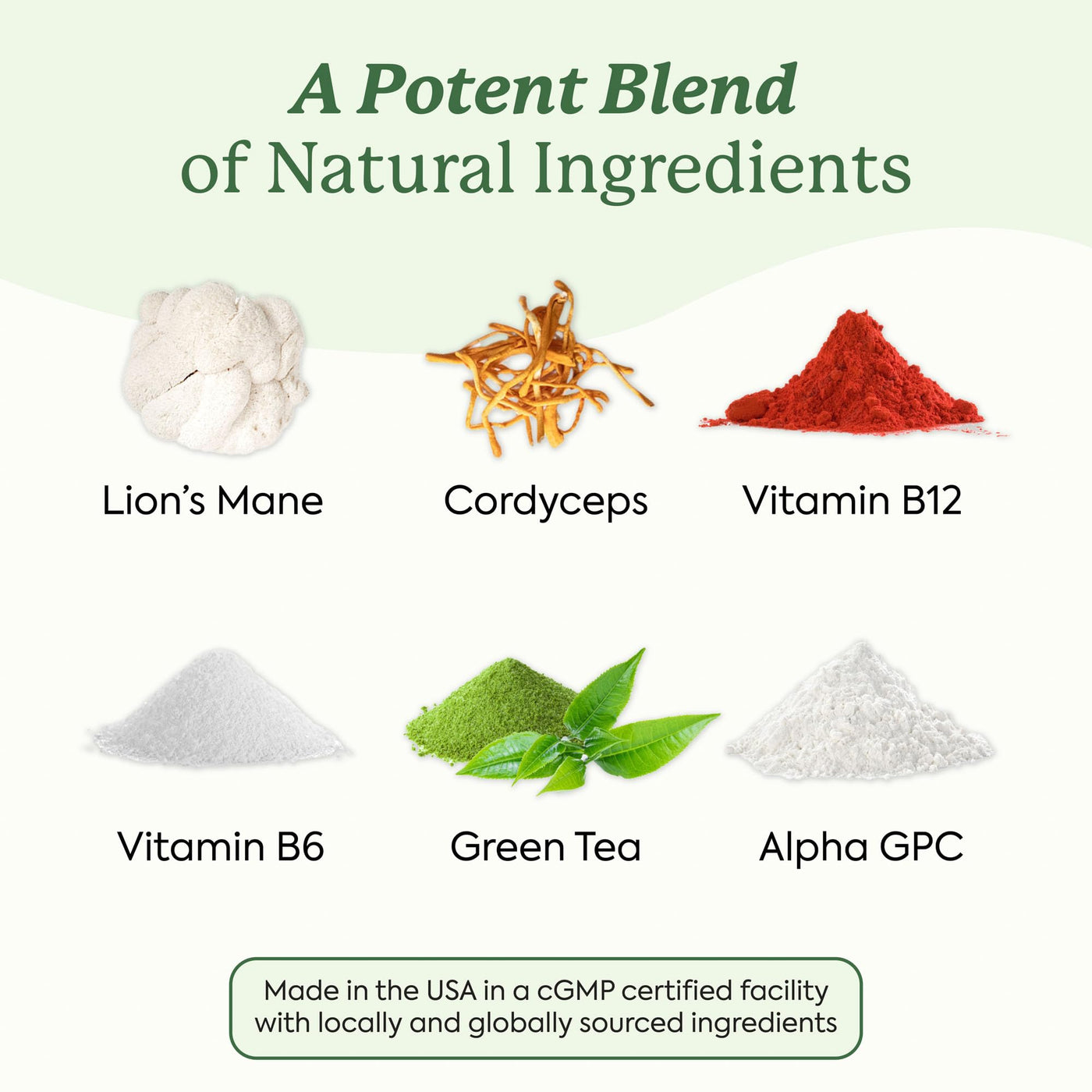 - High-potency natural ingredient blend Each serving delivers 3000 mg of dry herbs and mushrooms. Lion's mane, B vitamins, Alpha GPC, and green tea offer powerful nootropic effects. WonderFocus gummies support short- and long-term brain health