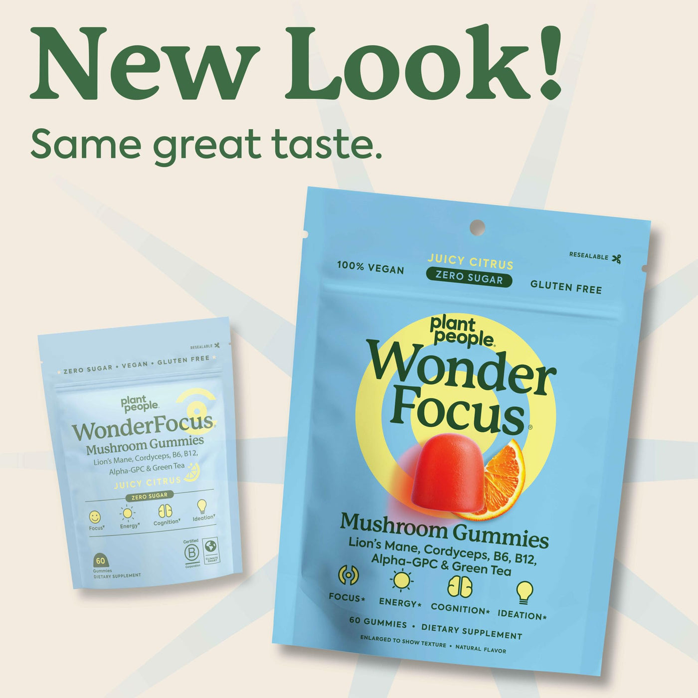 Plant People WonderFocus Mushroom Gummies with Lion’s Mane & Cordyceps - Nootropic Brain Supplement Boosts Memory, Focus, Energy & Mood in Adults | No Sugar, 100% Vegan, Citrus Flavor, 60 Count 60 Count (Pack of 1)