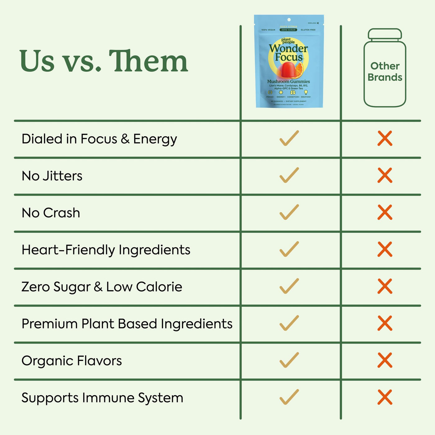 Plant People WonderFocus Mushroom Gummies with Lion’s Mane & Cordyceps - Nootropic Brain Supplement Boosts Memory, Focus, Energy & Mood in Adults | No Sugar, 100% Vegan, Citrus Flavor, 60 Count