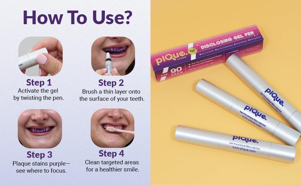 - Smart Plaque Detection - This clever gel pen reveals invisible plaque that causes cavities and gum problems. The purple formula highlights sticky buildup your toothbrush missed so you can see exactly where to focus your cleaning efforts.
