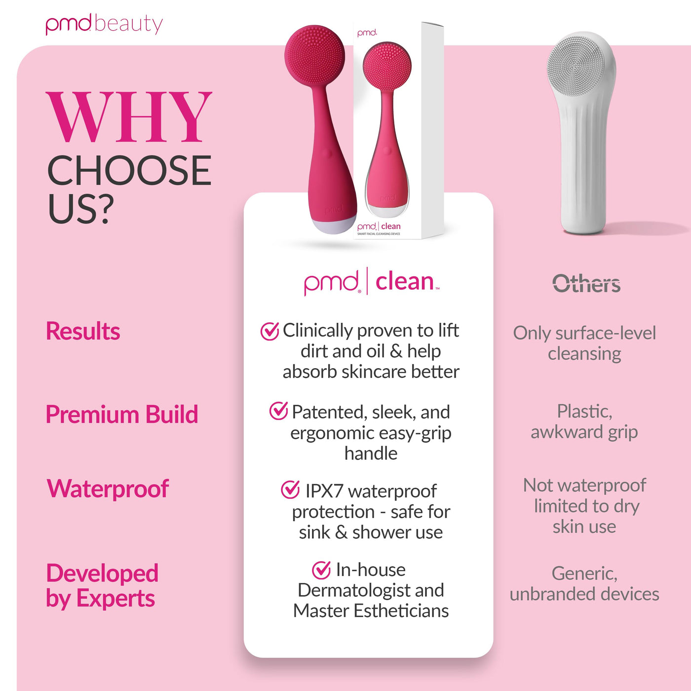 PMD Clean - Smart Facial Cleansing Device with Silicone Brush & Anti-Aging Massager Pink