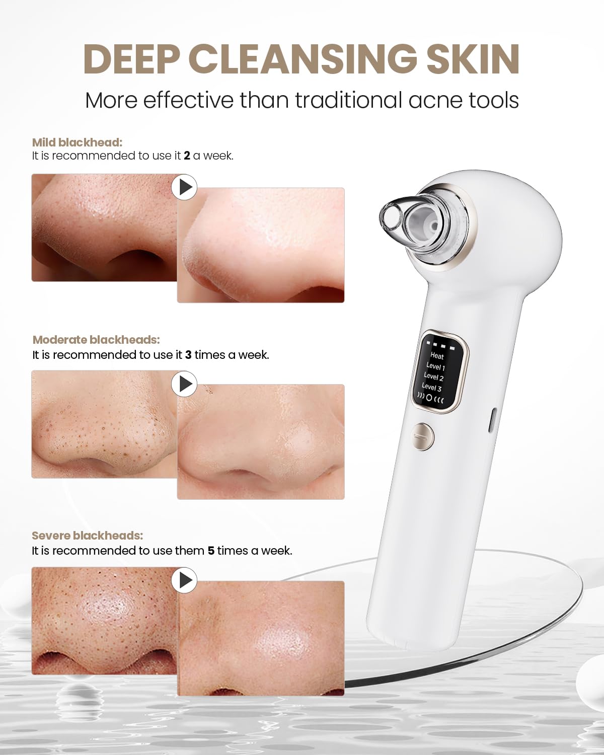 - MULTI-LEVEL SUCTION: Features 3 adjustable suction power levels to effectively remove blackheads, dead skin, and oil from different skin types