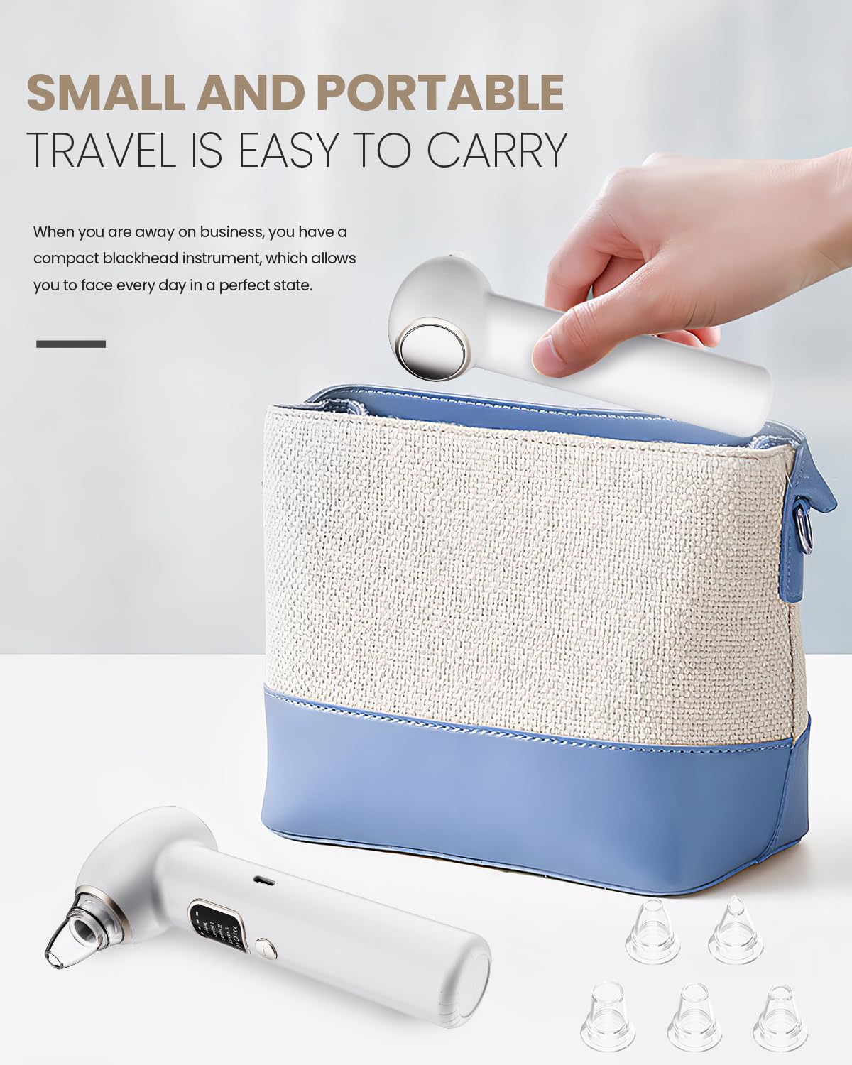 Pore Vacuum Blackhead Remover Kit - 5 Suction Heads & Extractor Tools, 3 Adjustable Suction Levels - Facial Pore Cleansing for Women&Men (White)