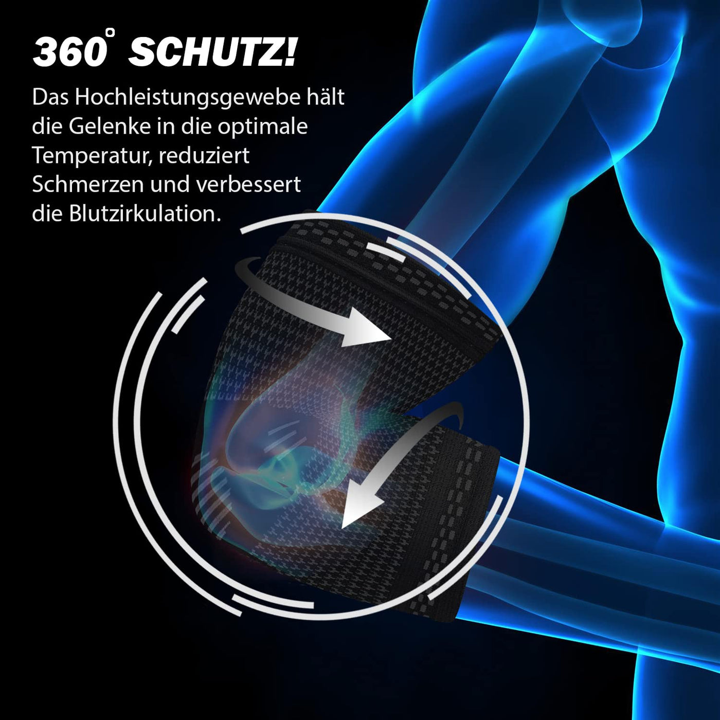 - Premium quality & Easy to use --- How do you use the elbow brace? --- [1] The elbow bandage is made of a blend of nylon and polyester and is highly elastic and breathable. They quickly absorb sweat and keep your elbow dry and odor-free. [2] The elbow brace stays in place and won't slip off when you use it. You can wear them all day long.