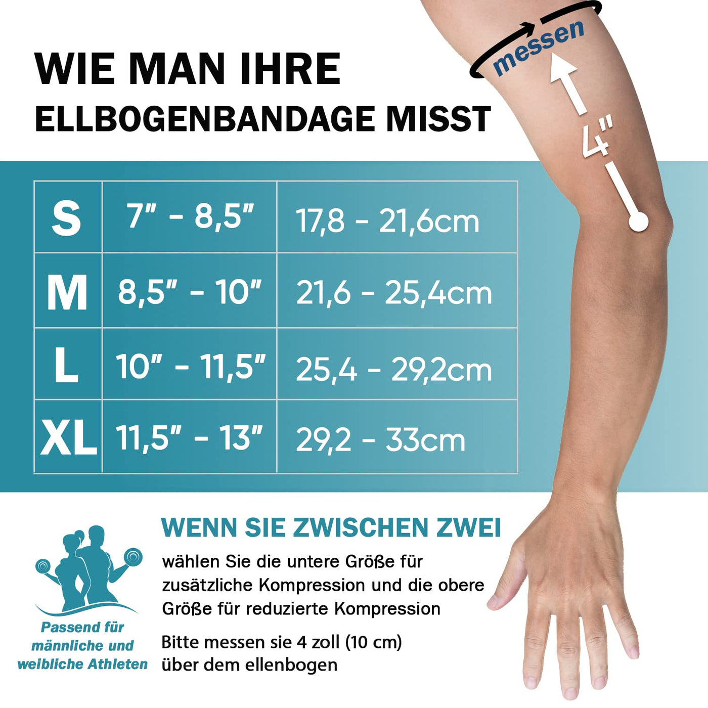 - More comfort & More efficiency---How do you choose the size of the elbow brace? --- The right size is a prerequisite for any effectiveness. Please take a look at our size chart and measure your circumference using our instructions. Measure around your kneecap (4"/10cm ABOVE the center of your elbow joint). POWERLIX elbow braces are available in various sizes (S, M, L and XL) and colors (black, blue and beige).