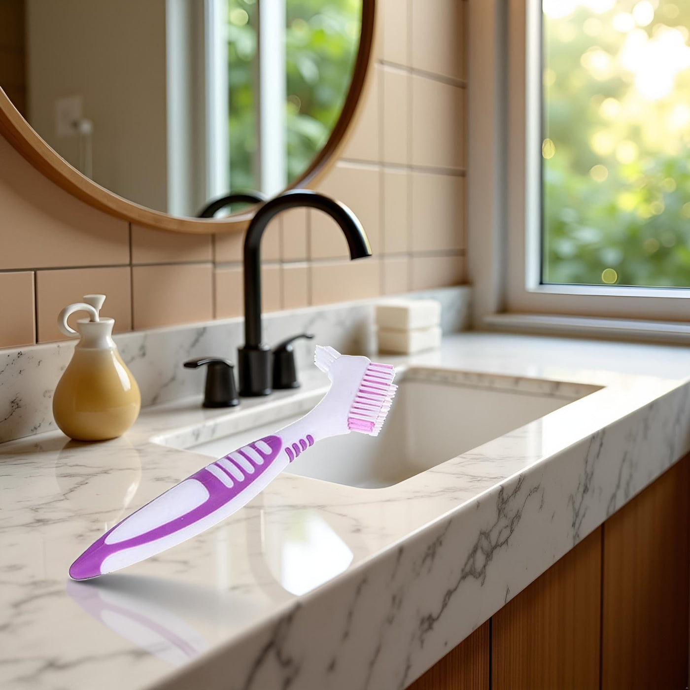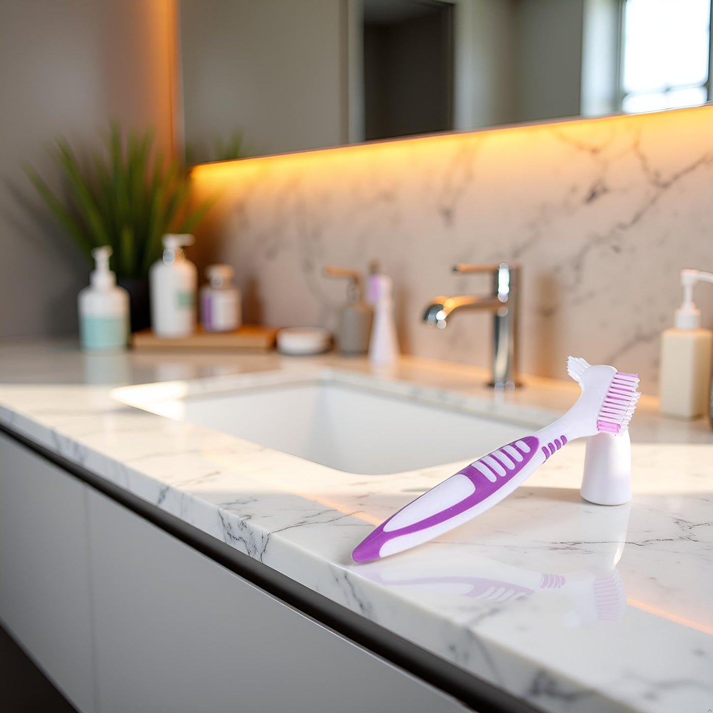 - Multi-Layered Bristles: This premium denture brush features densely-packed, multi-layered bristles designed for thorough cleaning of dentures.