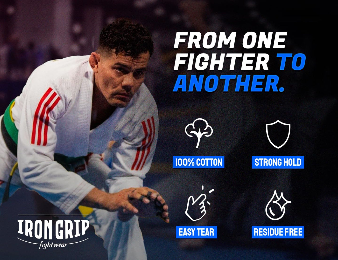 🏆 Iron Grip Fightwear – Built for Grapplers, Trusted by Champions Tough Enough for the Mats – Stay Taped, Stay Dominant! At Iron Grip Fightwear, we know jiu- jitsu fighters demand maximum durability, grip, and comfort—because when you’re battling for position, the last thing you need is your tape failing. That’s why we engineered our pro-grade athletic tape to withstand the toughest rolls, grips, and sweat sessions. 🔥 Why Grapplers Love Our Tape: ✅ Unbreakable Hold – Stays locked in through hours of drilling, sparring, and competition. ✅ Sweat-Proof Adhesion – Won’t slip when you’re drenched (because we know BJJ = 90% sweat). ✅ Breathable & Comfortable – No itchy residue or restricted movement—just a second-skin feel. ✅ Easy Tear, No Scissors Needed – Quick wraps between rounds without the hassle. ✅ Trusted by Competitors – Used by elite grapplers who refuse to compromise. 🛡️ Built for Fighters, By Fighters We’re not just another tape company—we train too. After years of dealing with weak, peeling, or uncomfortable tape, we created the ultimate solution for BJJ athletes. Whether you’re taping fingers for grip battles, securing joints, or protecting calluses, Iron Grip Fightwear tape won’t let you down. 🎯 Perfect For: ✔ Gi & No-Gi Grapplers ✔ Competition Prep ✔ Finger & Joint Support ✔ Injury Prevention & Recovery