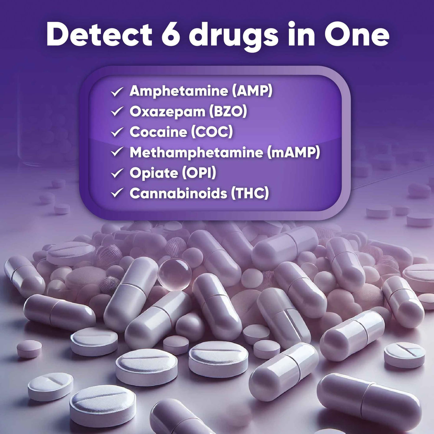 - Accurate and Reliable - 510(k) Cleared for Home Use (OTC Use) and professional use. Over 99% accurate in detecting 6 drugs according to the recommended cut-off level: THC-50 ng/mL; OPI-2000 ng/mL; AMP-1000ng/mL; COC-300 ng/mL; BZO-300 ng/mL; MET/mAMP-1000ng/mL.