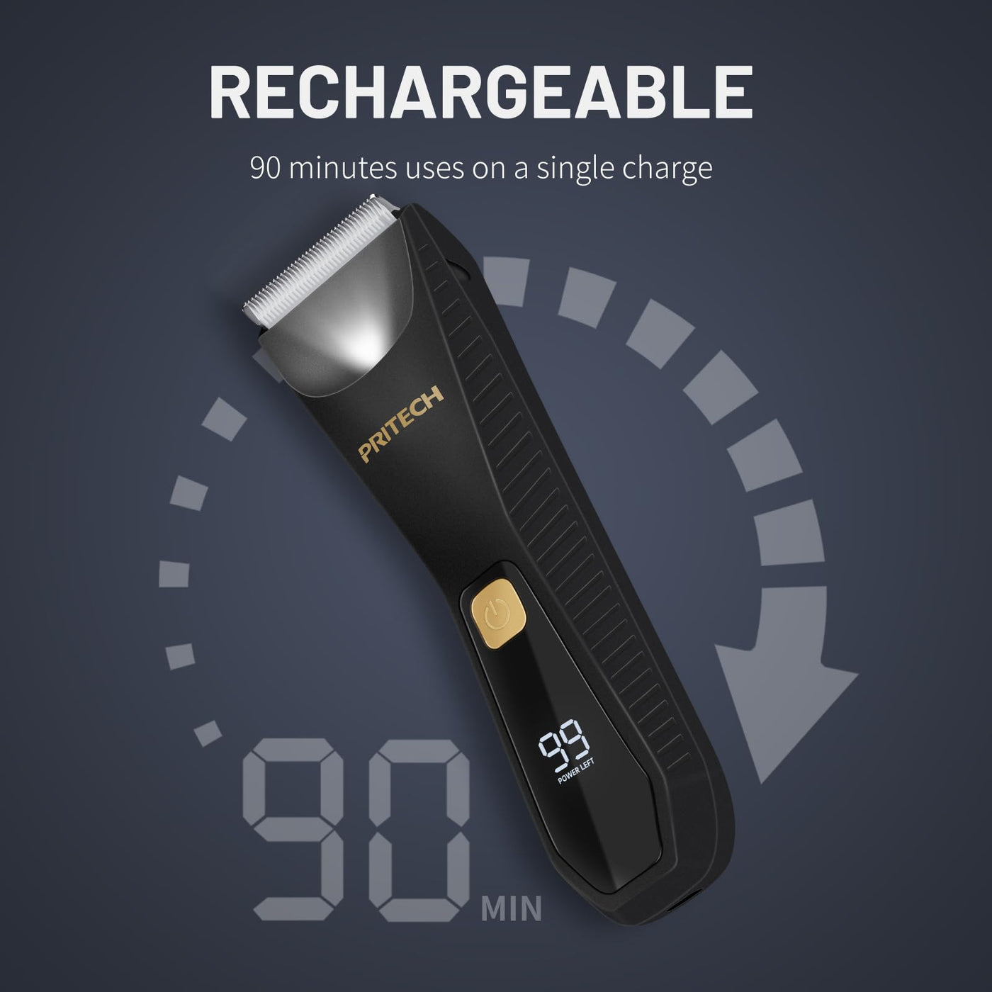 PRITECH Pubic Hair Trimmer for Men - Waterproof Body Hair Trimmer, Ceramic Blade Body Shavers for Men with USB-C Charging, Wet & Dry Use & Nick-Free Design, Balls & Sensitive Skin Safe (Black)