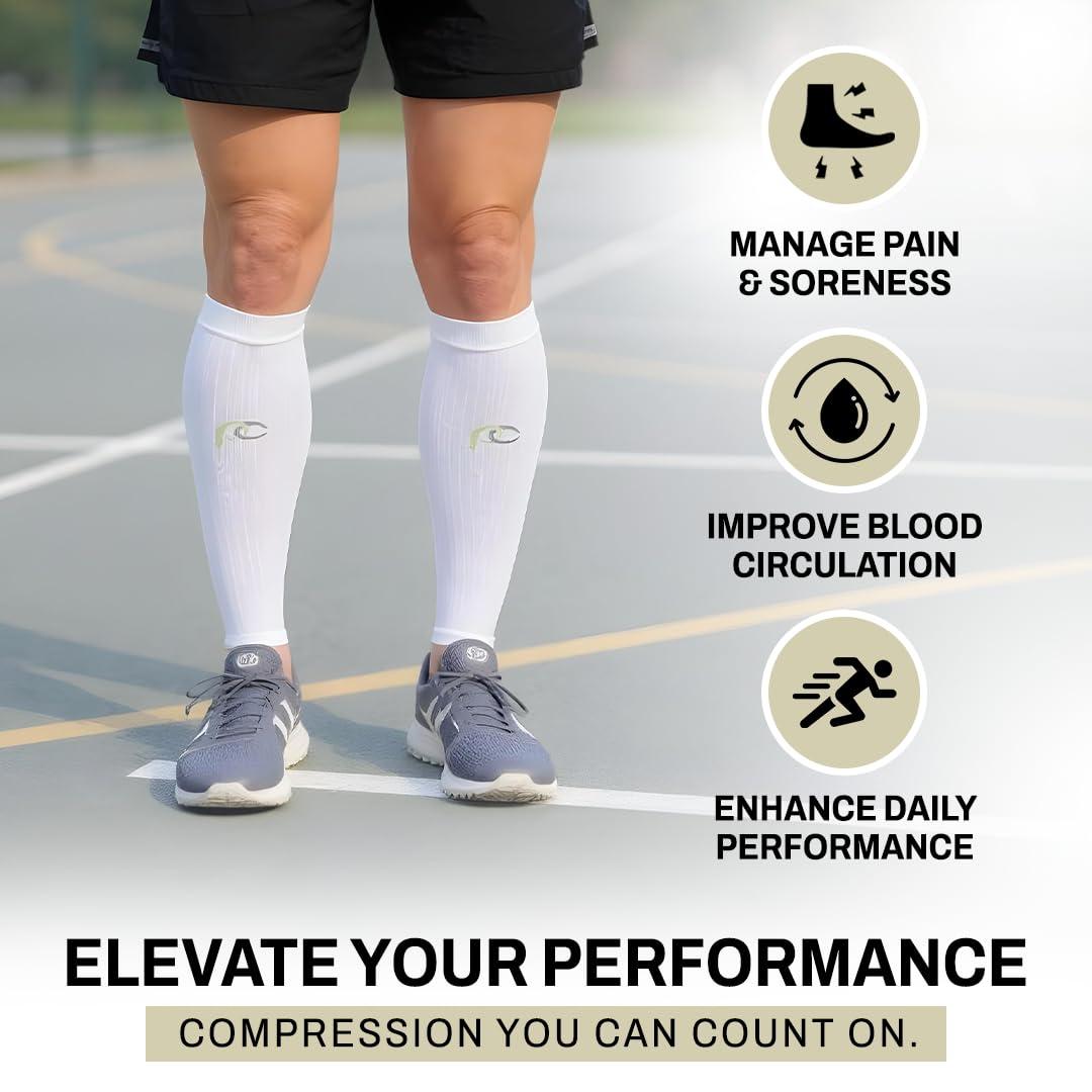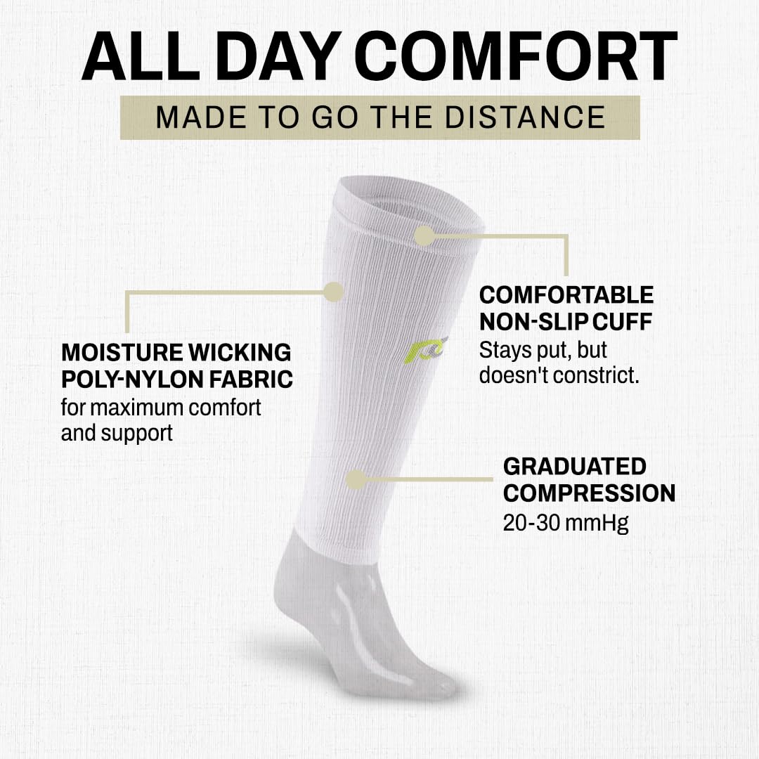 PRO Compression Calf Sleeve for Pain Relief | Calf Guard for Running, Cycling, Nurses, and Sports X-Small White