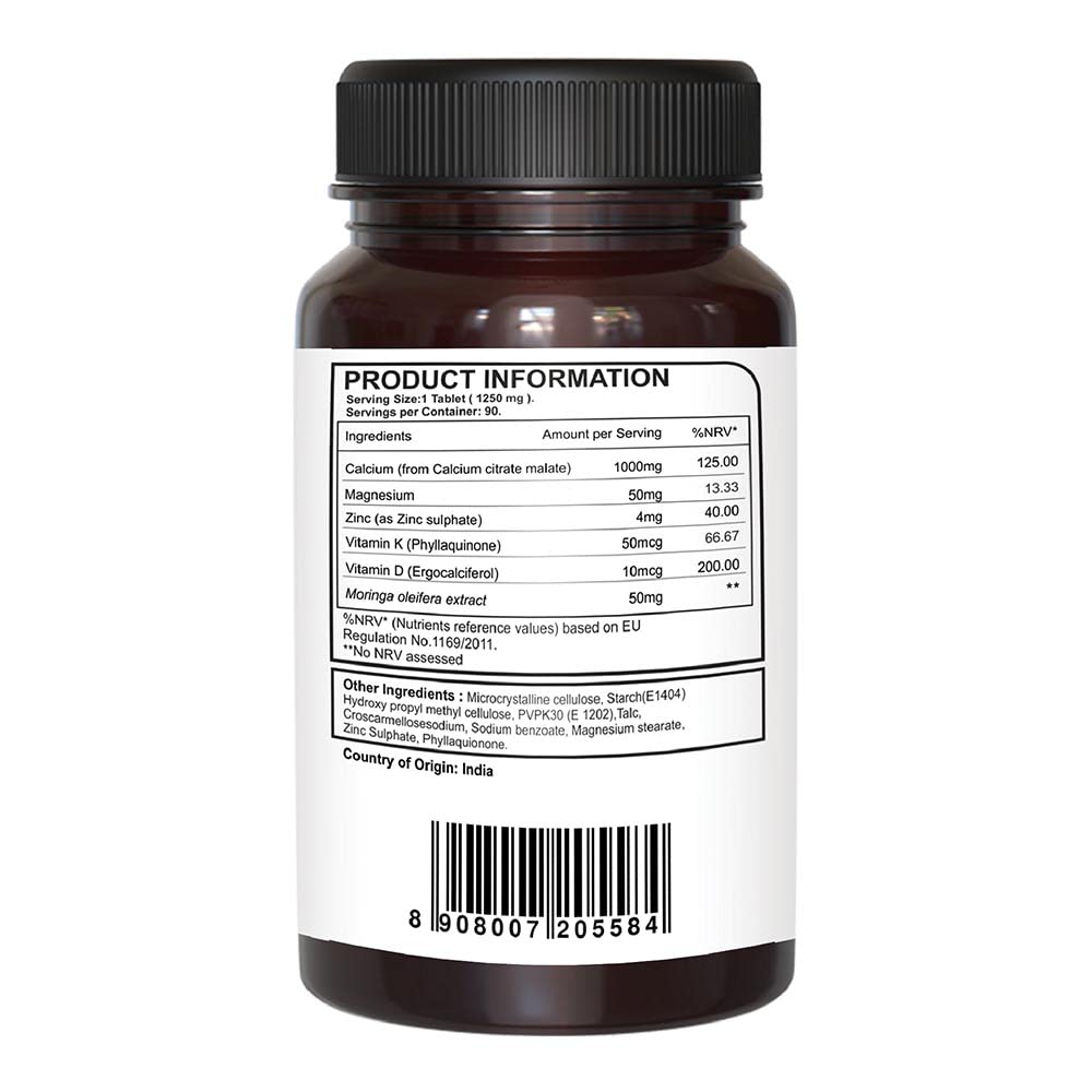 - Every tablet of 1250mg provide 1000 mg Calcium Citrate Malate, 50 mg Moringa, 50 mg Magnesium oxide and 400 IU Vitamin D