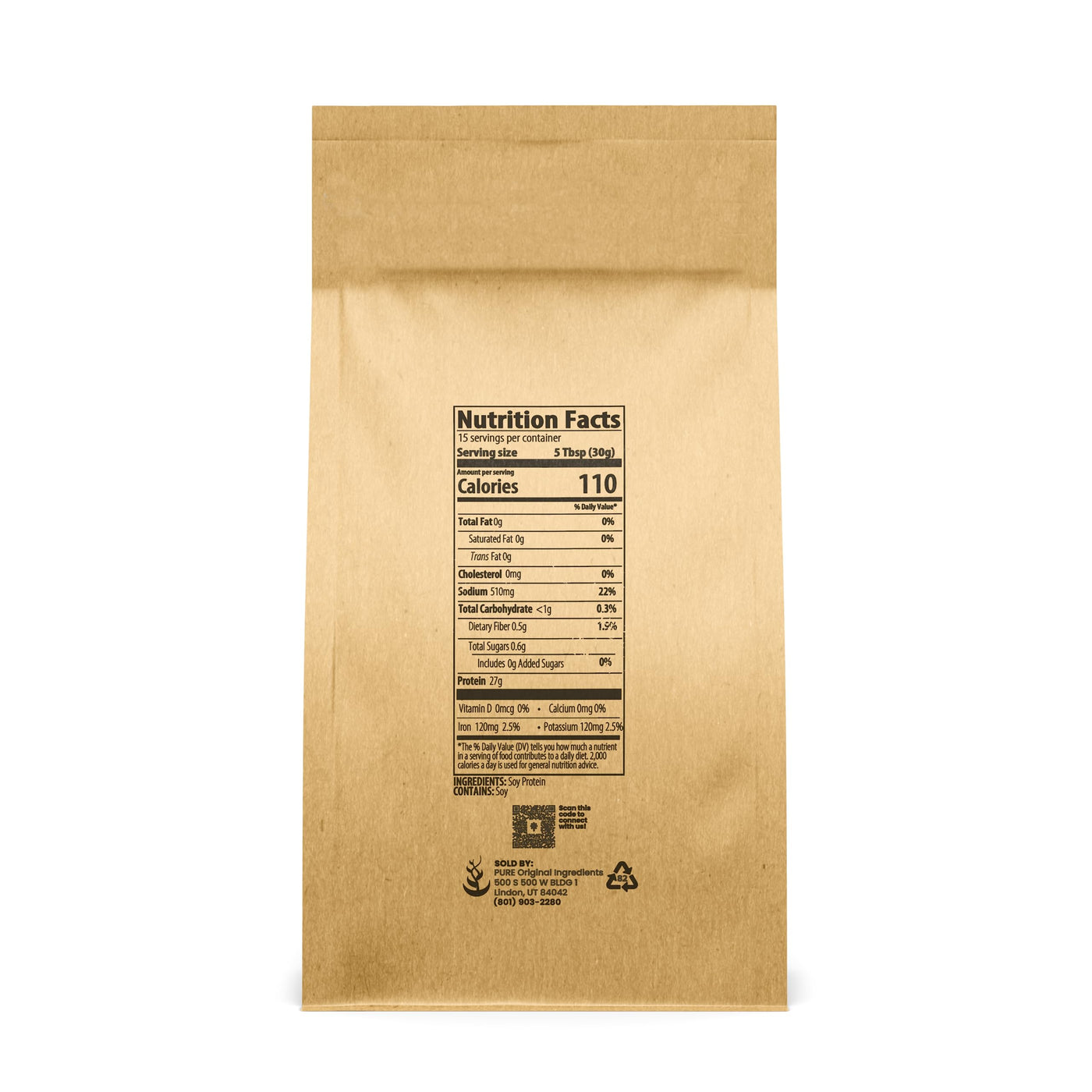 - Pure Original Ingredients Soy Protein Isolate in a resealable bag