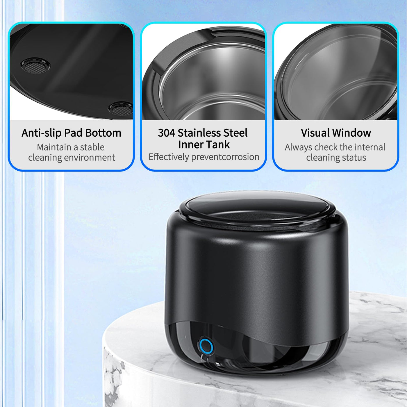 - Large capacity & Portable: This retainer cleaning machine is compact and lightweight. A 230ml capacity is enough to clean dentures, braces, orthodontic appliances and retainers and other items. When you travel, you can pack the ultrasonic cleaner in your suitcase
