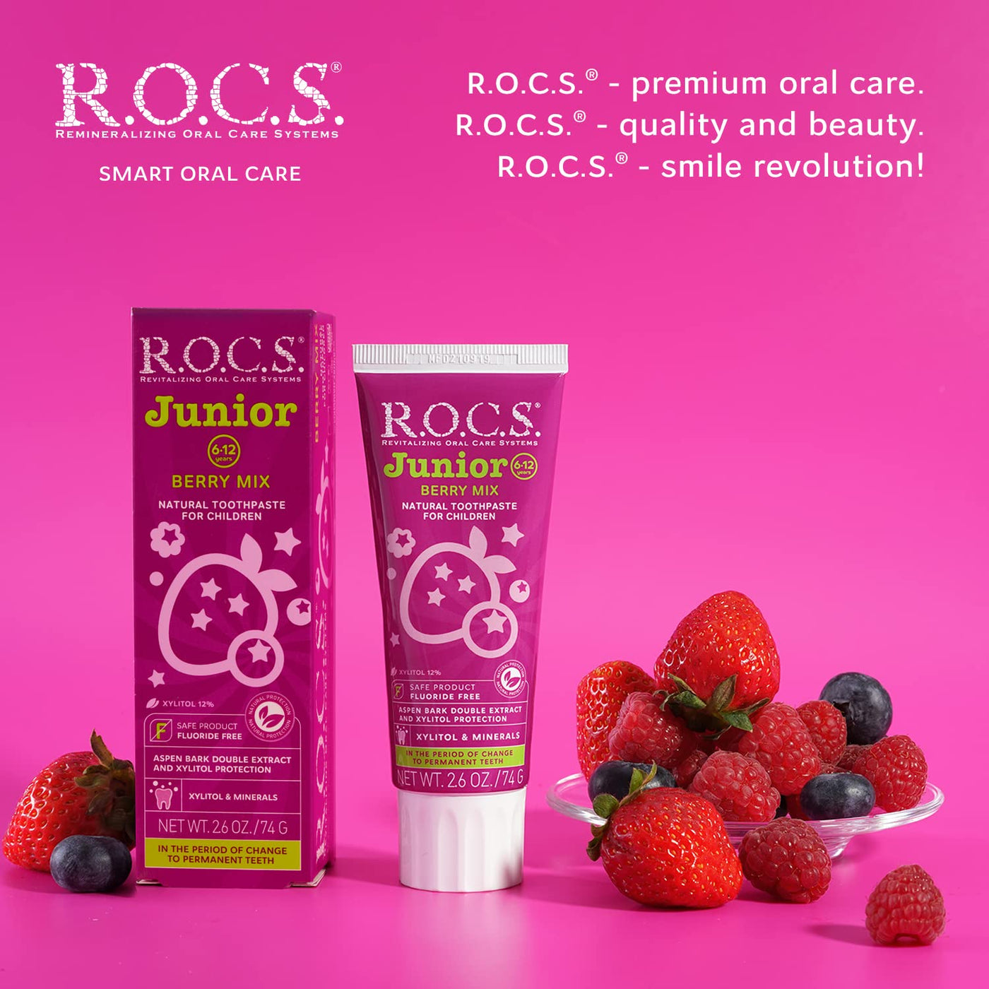 R.O.C.S. Junior Toothpaste - Enamel Whitening Teeth Gum Protection - for Children 6-12 Years Old - Safe to Swallow - Natural, No Fluoride or Sulfate (Berry Mix, Pack of 1) Berry Mix 2.6 Ounce (Pack of 1)