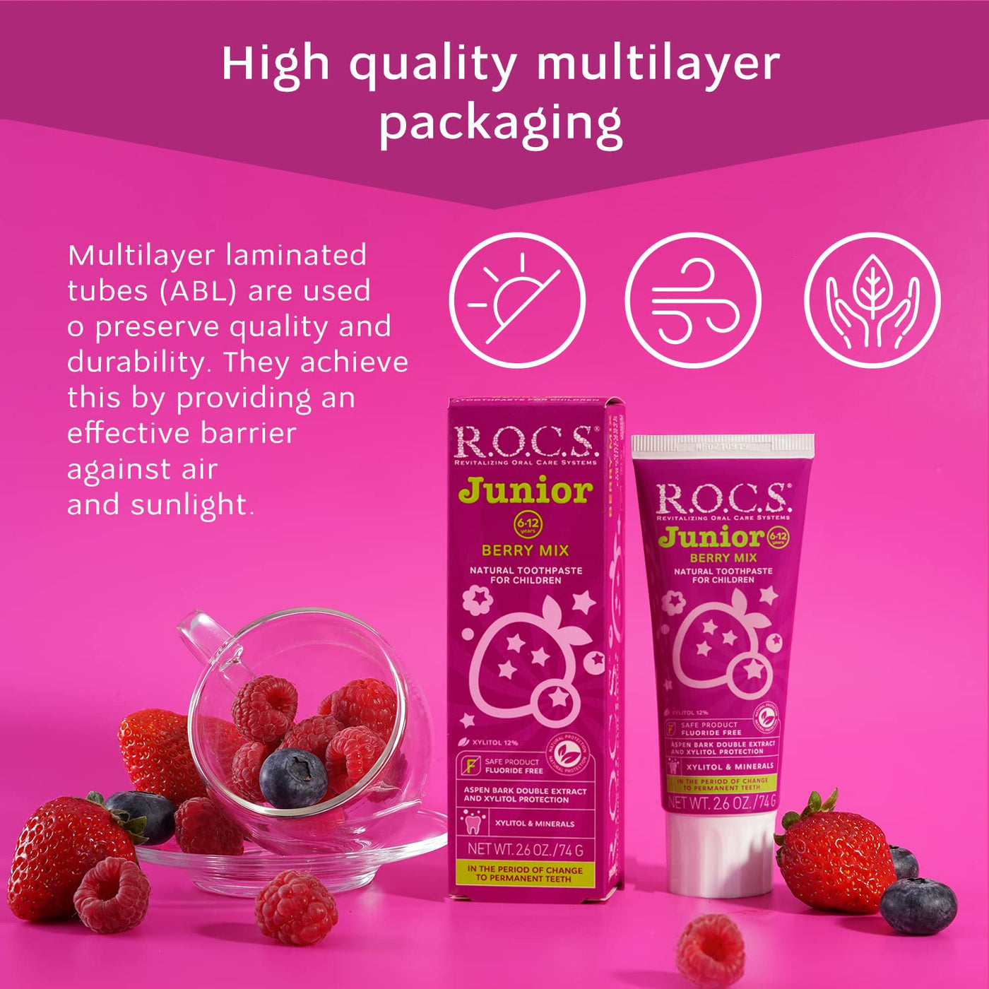 R.O.C.S. Junior Toothpaste - Enamel Whitening Teeth Gum Protection - for Children 6-12 Years Old - Safe to Swallow - Natural, No Fluoride or Sulfate (Berry Mix, Pack of 1)