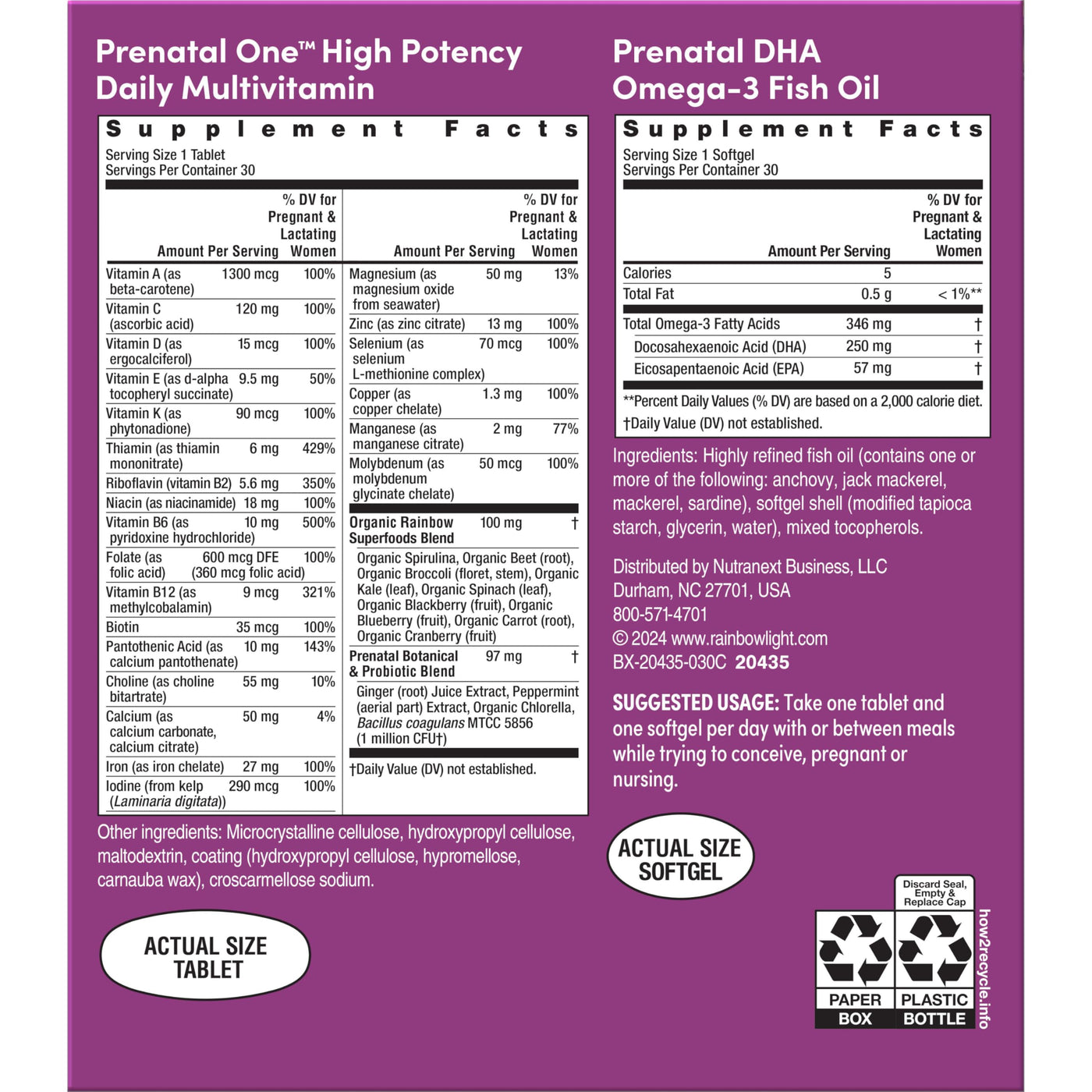 Rainbow Light Prenatal Daily Duo Multivitamin Kit, With Prenatal One Daily Multivitamin and Prenatal DHA Omega-3 Fish Oil for Mom's Health and Baby's Development Support, 30 Count
