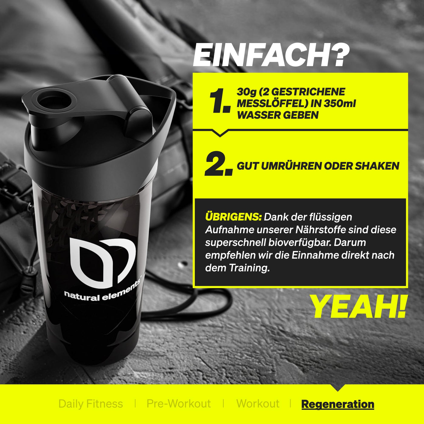 - RECOVERY FOR DRINKING | Simply mix 2 level measuring spoons with 350ml of water after training and enjoy. It's best to use a shaker so that the powder dissolves optimally. There are 14g of protein per serving and your muscles are like this: YEAH!