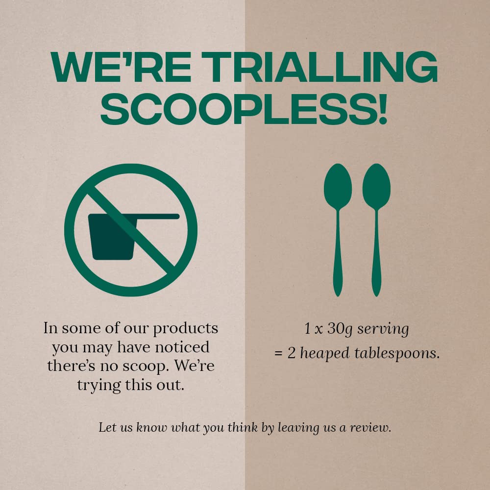 • The packaging used for Plant-Based Protein is fully compostable. Even the flavour sticker! The pouch can be thrown away in your compost bin. The scoop is also recyclable and made from recycled plastic.