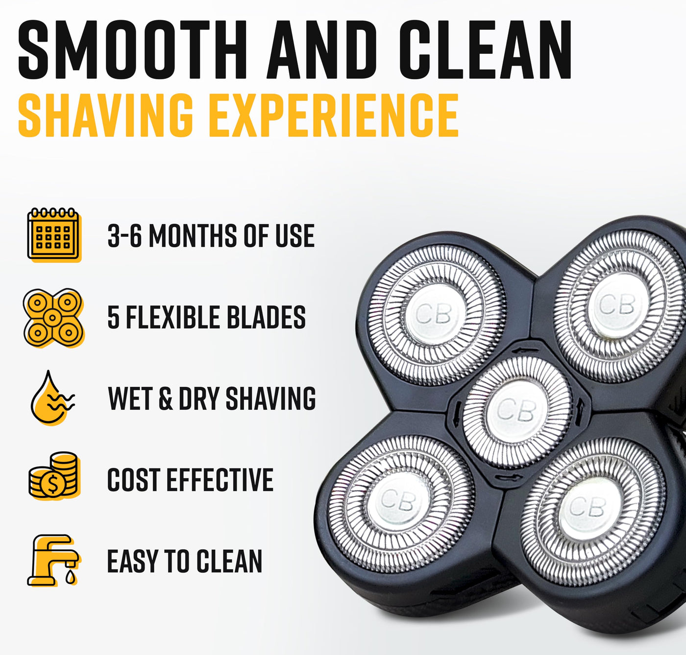 Replacement Shaver Head, Universal Rotary Wet & Dry 5-Blade Head for Coarse Hair, Skull, Face, Body, Arms, Legs, Back, Chest, 1 Unit, The Cut Buddy