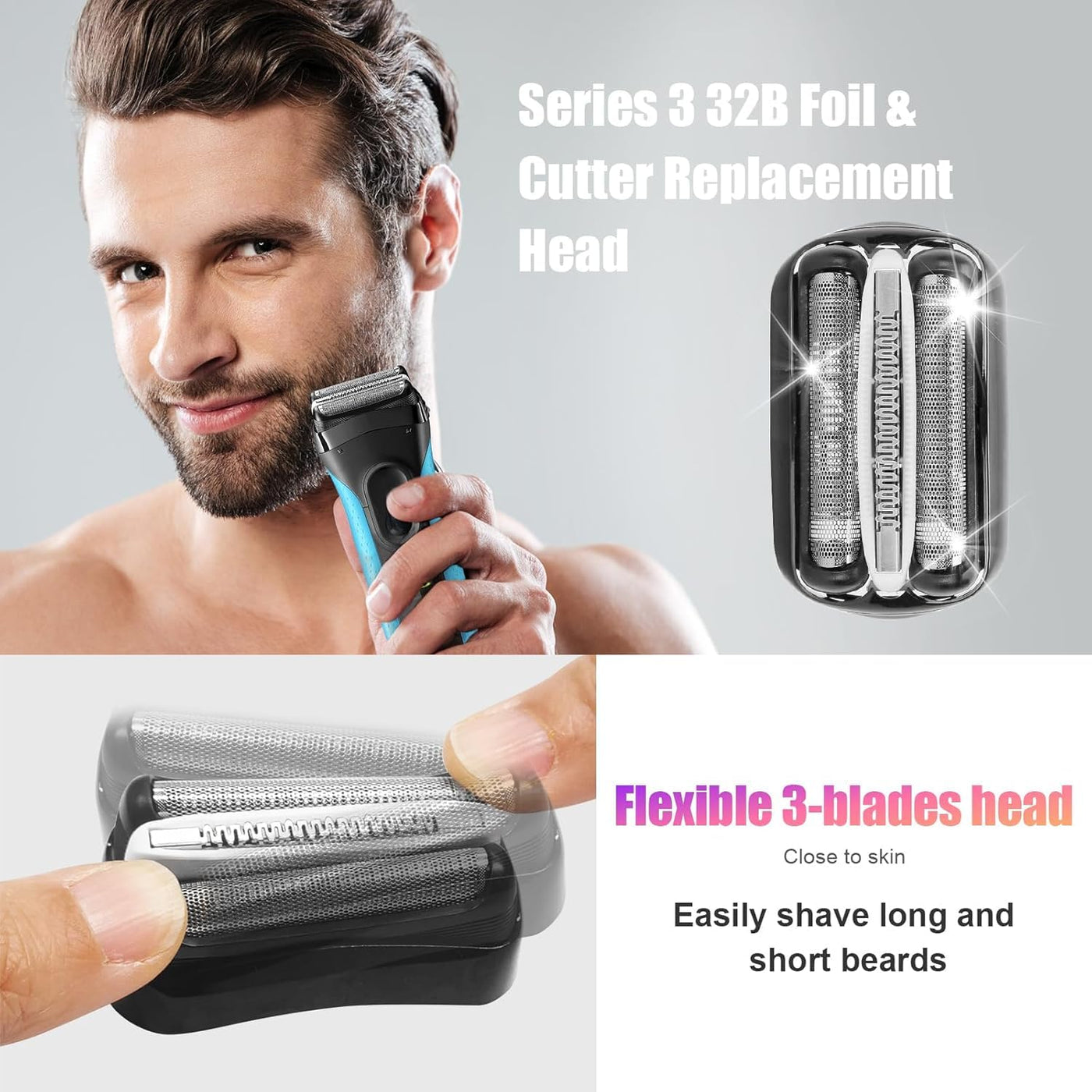 Replacement razor heads series 3 32B compatible with B***n S3 3040s 3000s 3050cc 3010s 3070cc 3080s 3090s 310s 3020s 330s 370cc-4 380s-4, 2 pieces