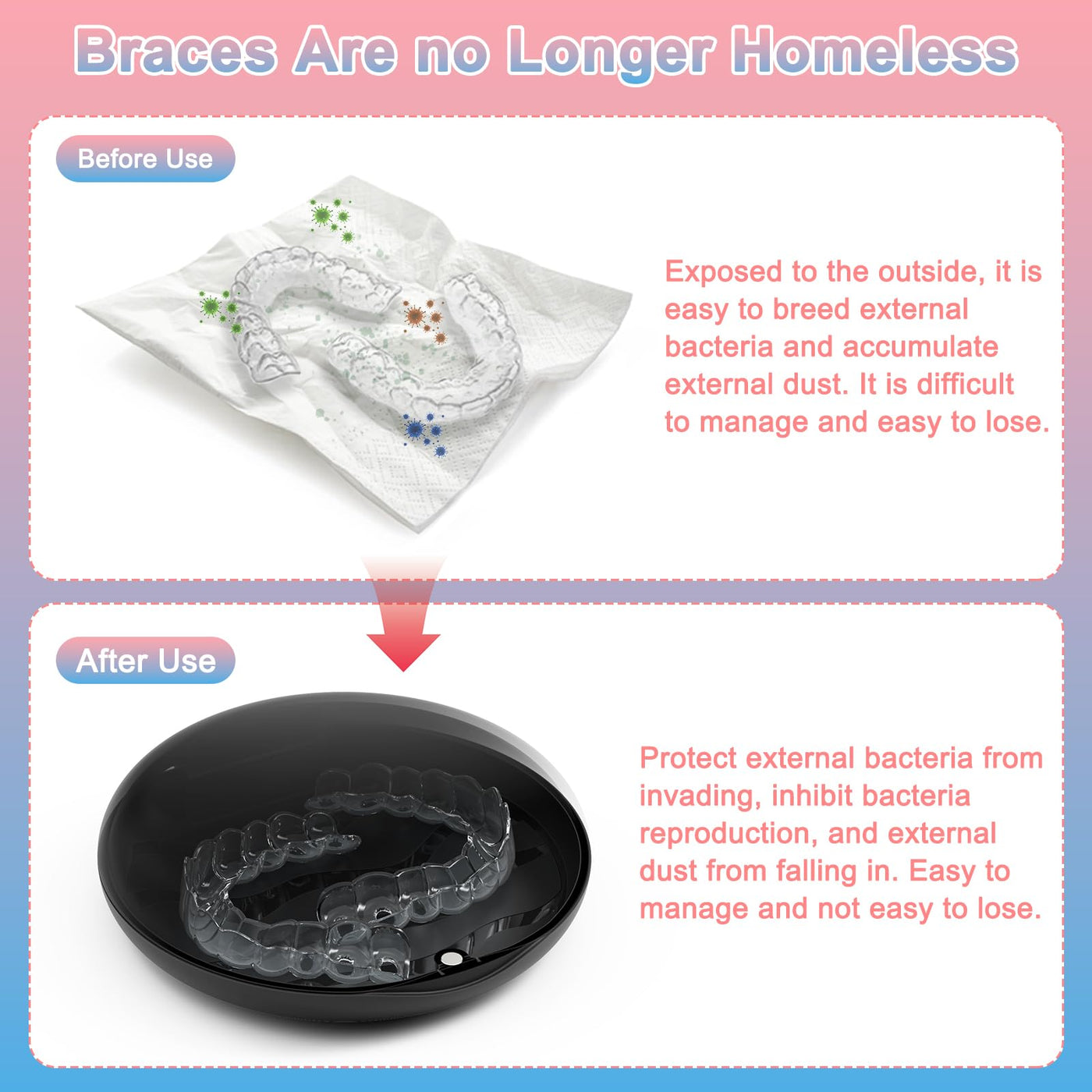 - Wide Range of Uses: This retainer case is suitable for storing aligners, night guards,mouth guards, dentures, braces, mouth shells, splints, ear plugs, toothbrush heads, chewy, jewelry and other orthodontic or oral care devices. Used as retainer case/aligner case/mouth guard case/denture case.