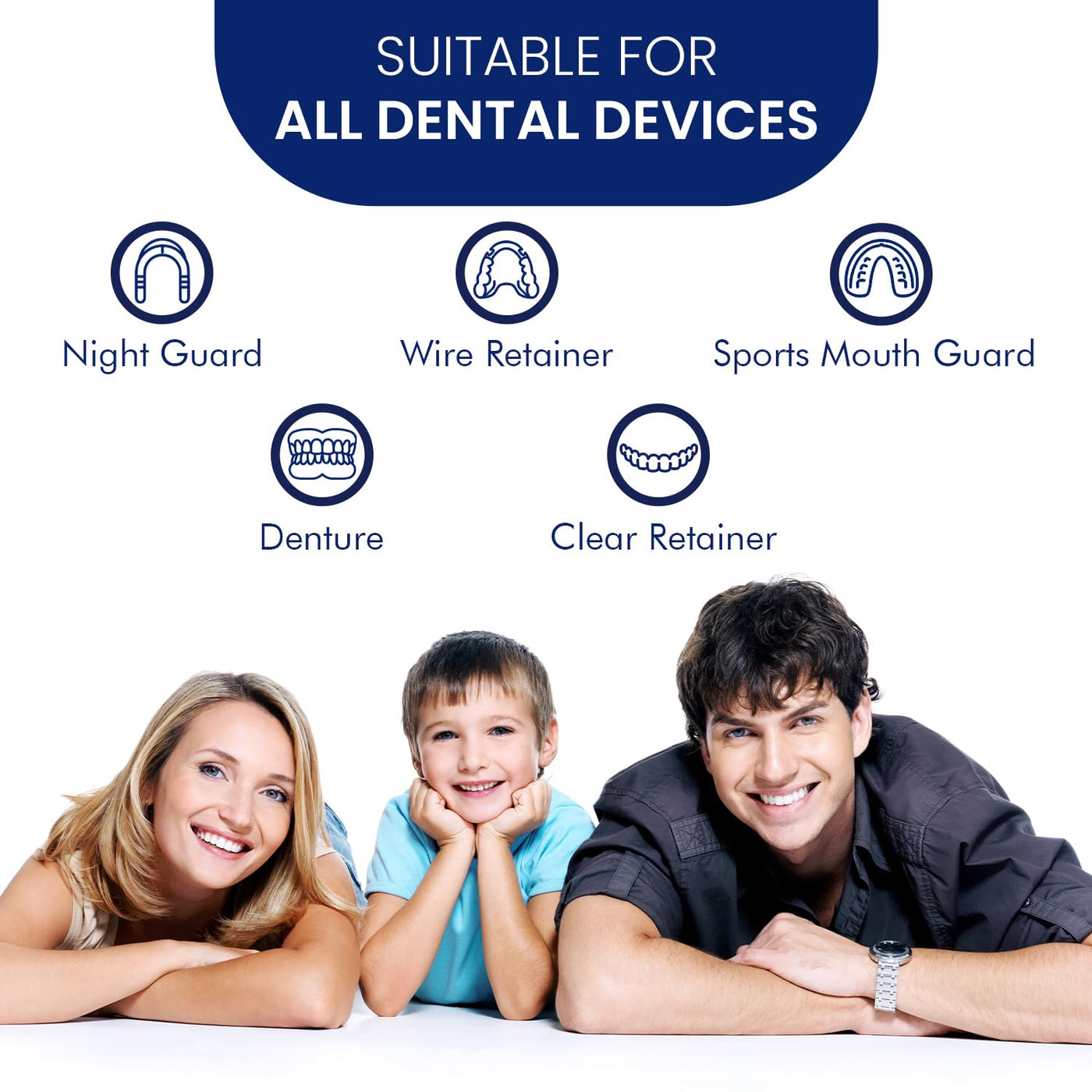 EFFECTIVE & REFRESHING The power of retainer cleaning tablets works to rapidly remove tough stains, odors, particles, plaque, tartar, discoloration and even long term build up from retainers, mouth guards, snore guards and other overnight dental devices. Our Extra Strength tablets work in as little as 5 to 15 minutes or can be used to soak devices overnight. BENEFITS & FEATURES 99.99 Percent Cleaning Fresh Mint Flavor Eliminates Odors Extra Strength Restores Clarity Works with Most Dental Devices Can be Used with our Ultrasonic Cleaning Machine Value Savings Pack REMOVES BUILDUP Buildup causes odor and bad breath, help eliminate up to 99.99% of buildup on your dental devices in just a few minutes. Buildup can also lead to poor oral hygiene and inflammation of the sensitive area around the gums. Give your equipment a quick refresher to keep your oral health at its best. CLEANS STAINS Regularly using our retainer cleaning tablets can help remove stains and buildup so that your devices look fresh and new. For best results for removing stubborn stains we recommend regularly soaking overnight or pairing the tablets with our highly effective ultrasonic cleaning machine. HOW TO USE TABLETS When using the cleaning tablets, first dissolve a tablet in 1 cup of warm water. Place your dental appliance in the warm water and allow to soak for at least 15 minutes. Leave overnight for stuck on stains and buildup. When done, rinse dental appliance with running water and dispose of remaining dissolved tablet water solution.