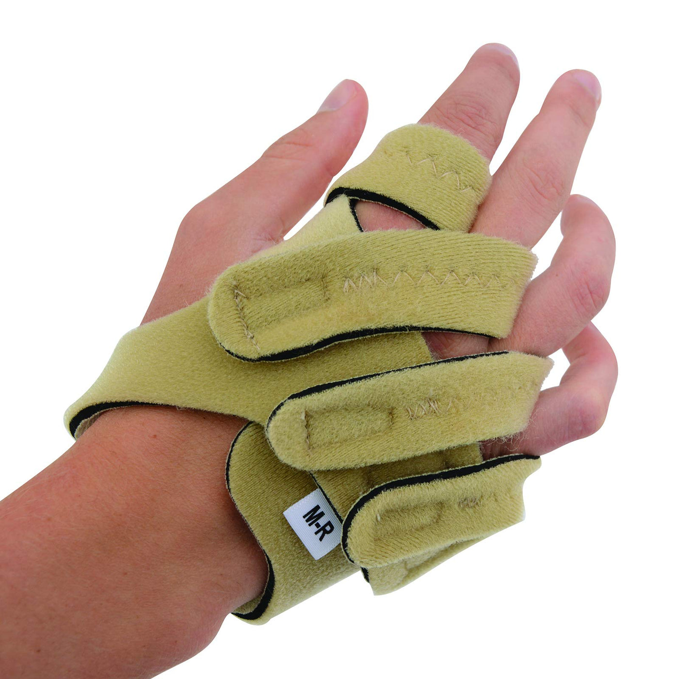 - Hand splint features finger straps that support each finger individually and encourage proper MCP and MP joint alignment