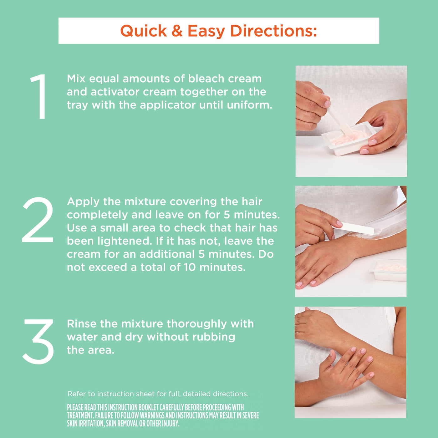 - Creme facial hair bleach with smooth, no-drip formula mixes fast and easily.