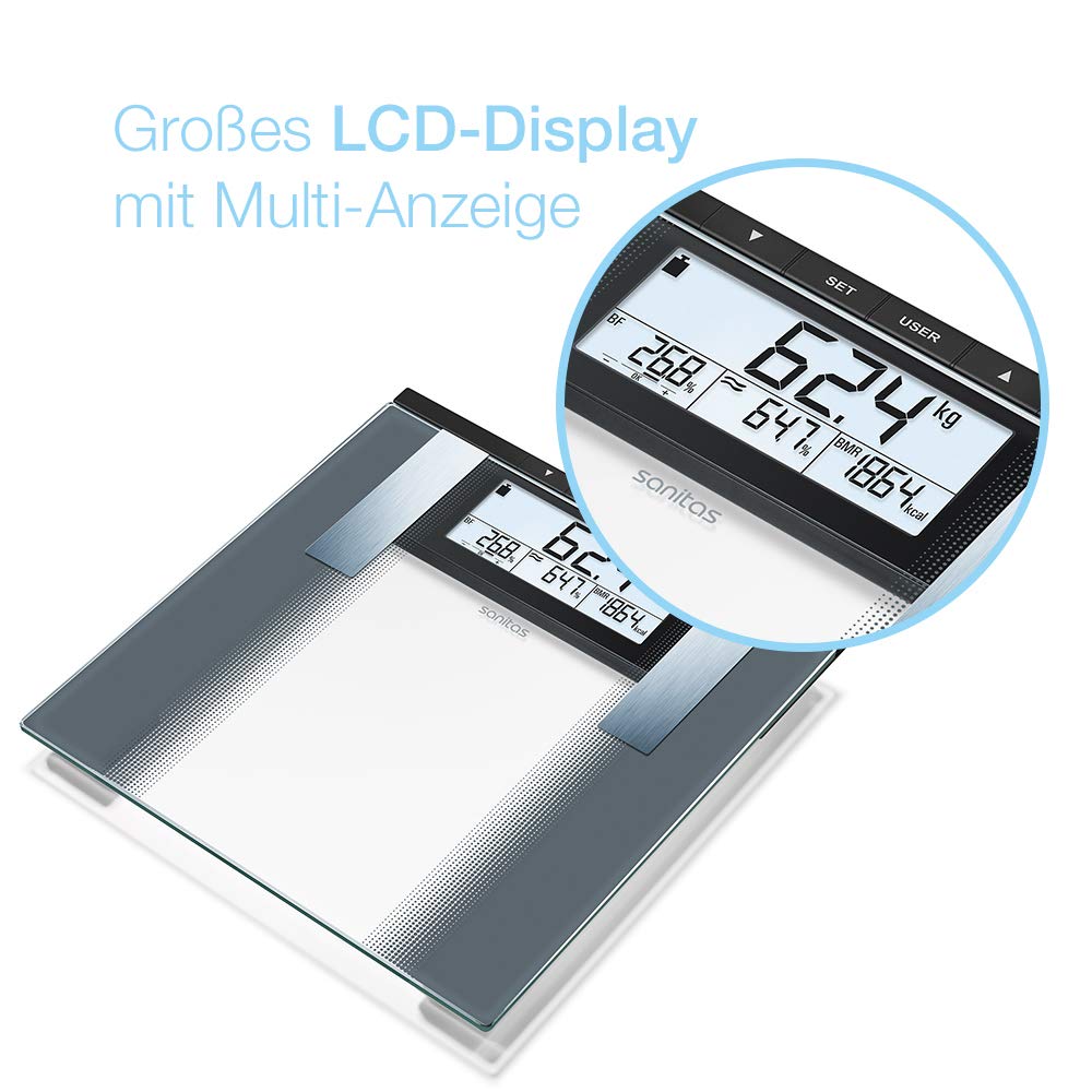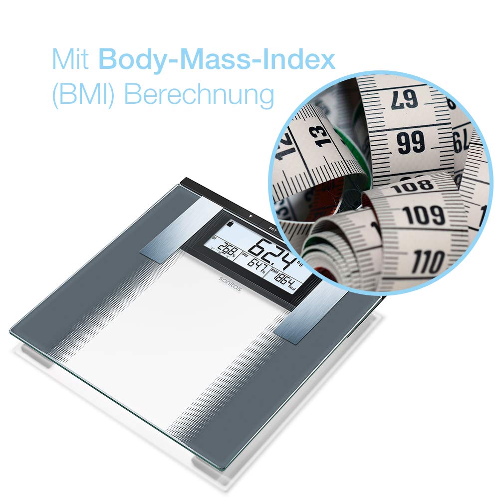 Sanitas SBG 21 diagnostic scales, for measuring weight, body fat, body water and muscle percentage, bone mass, calorie requirements