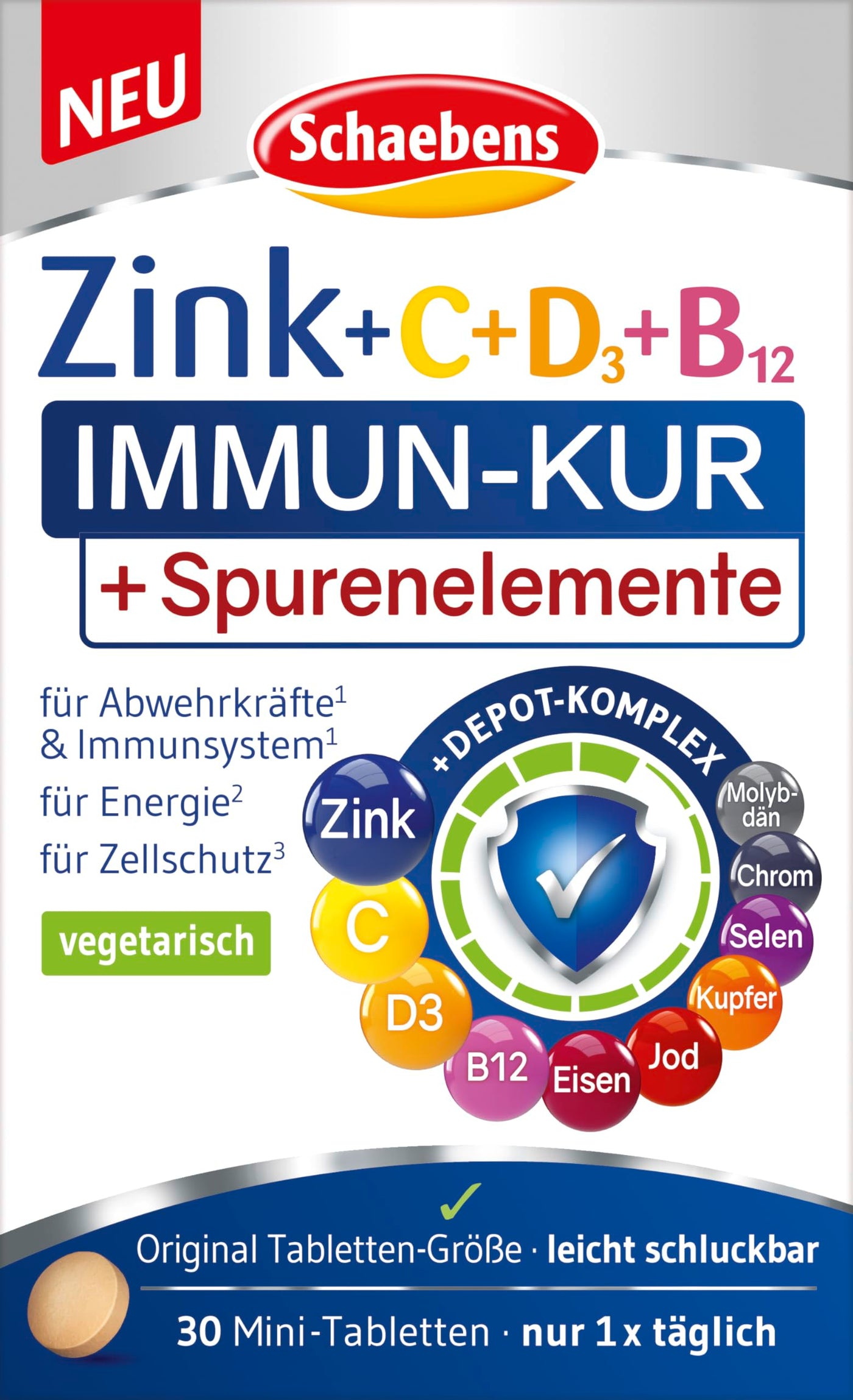 Schaebens Zinc + C + D3 + B12 Immune Treatment + Trace Elements 30 pieces (pack of 1)