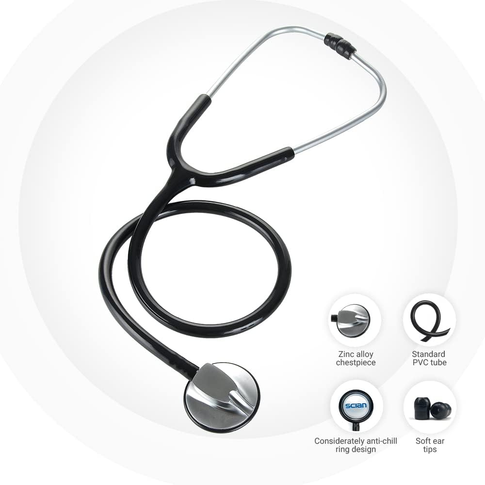 SCIAN Stethoscope for Nurse - Deluxe Single Head Stethoscope for Medical and Clinical Use, Perfect Work for Nurse Doctor Pediatric Infant (Black)