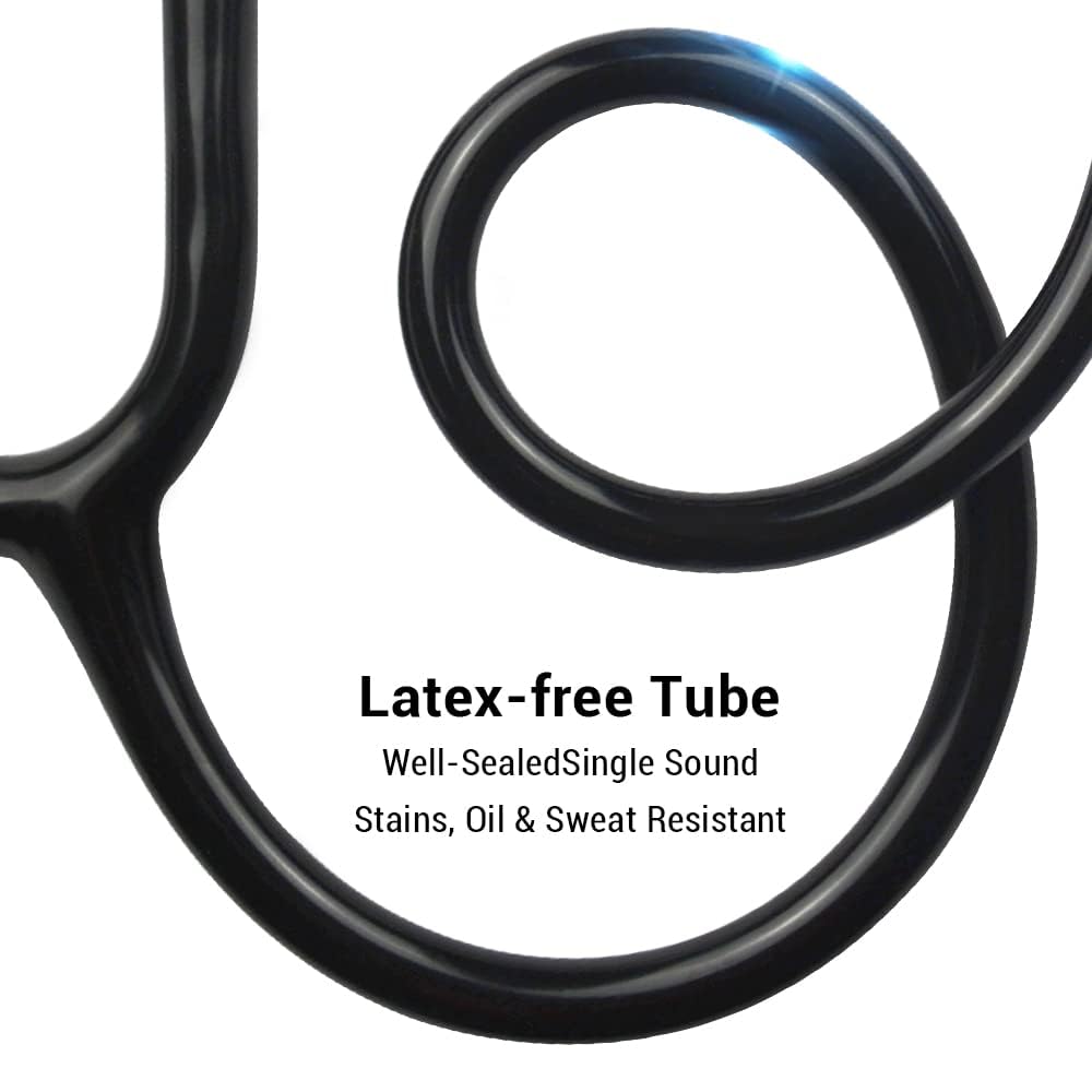 - High Quanlity Tube And Chespiece: Zinc alloy chestpiece with nickel-plated silver finish, excellent sound conduction and little acoustic attenuation. Thick and latex-free tube can resist stains and oil, well-sealed single sound conduction channel,good resistance to ambient interference, maximize sound performance, durability, comfort, and extended use