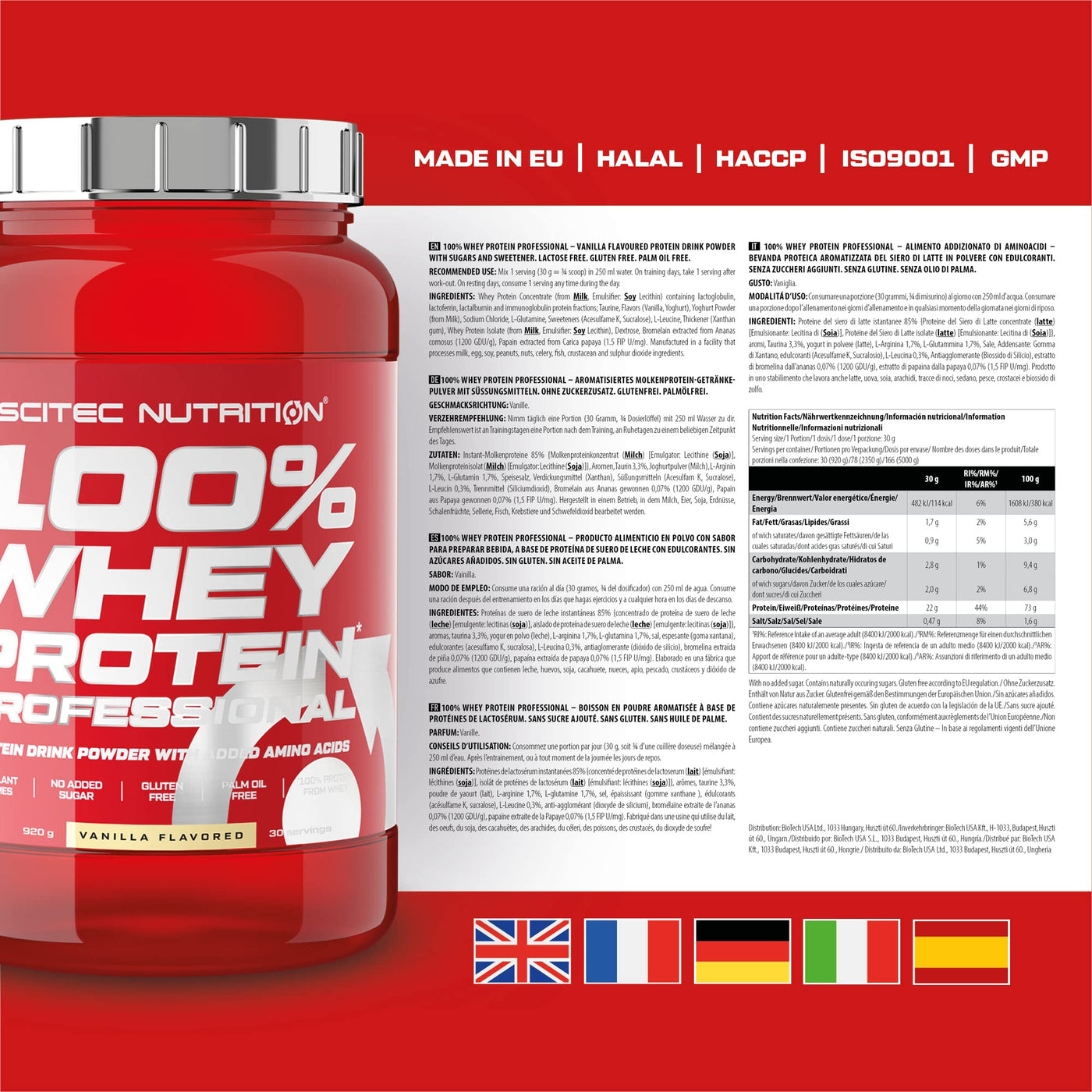 Scitec Nutrition 100% Whey Protein Professional - Enriched with additional amino acids and digestive enzymes - Gluten free - Palm oil free, 920 g, vanilla 30 servings (pack of 1)