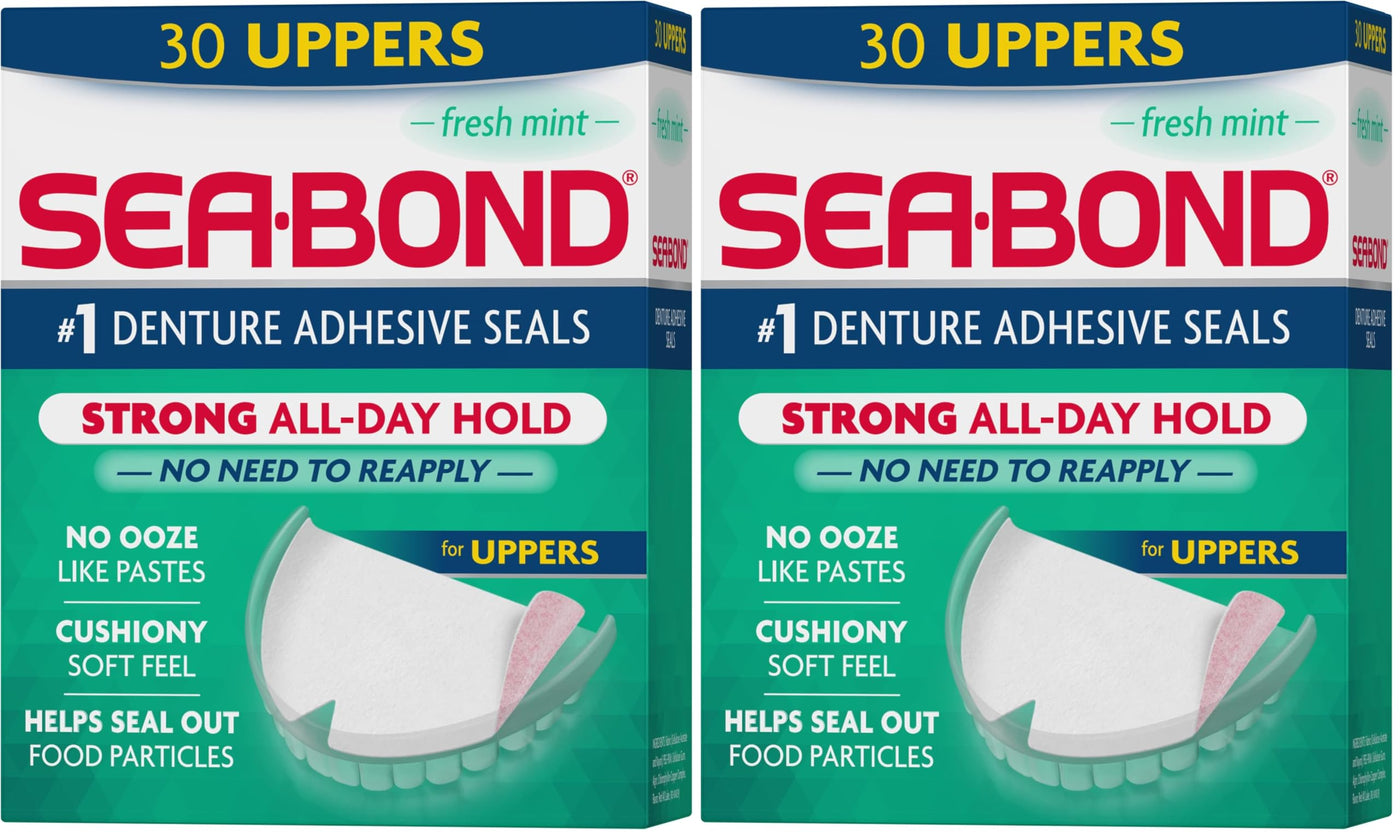 Sea Bond Secure Denture Adhesive Seals, Fresh Mint Uppers, Zinc-Free, All-Day-Hold, Mess-Free, 30 Count (Pack of 2) 30 Count (Pack of 2)