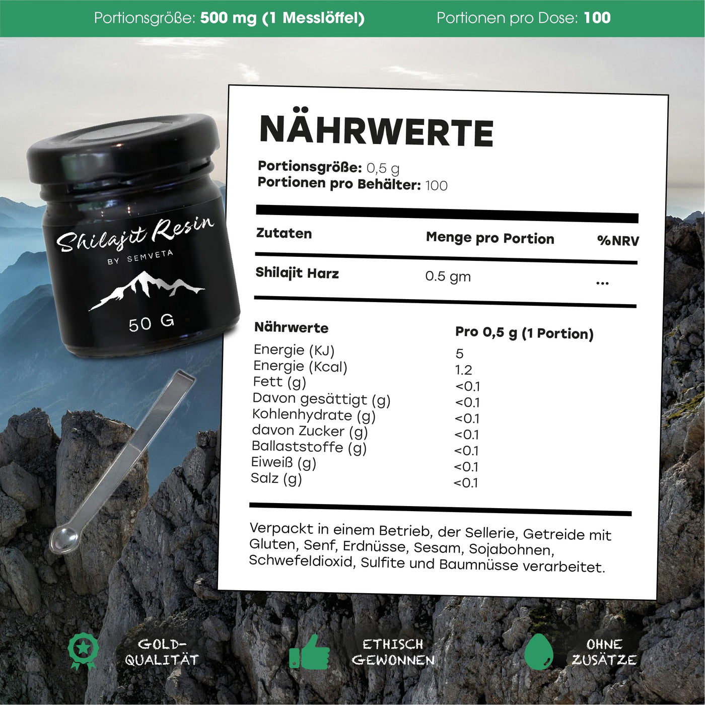 Semveta Original Altai Shilajit - 50g High-quality resin, 87+ minerals, fulvic acid - tested for heavy metals & Cold water filtered - Natural - For vitality, clarity & Immune system - 4 month supply