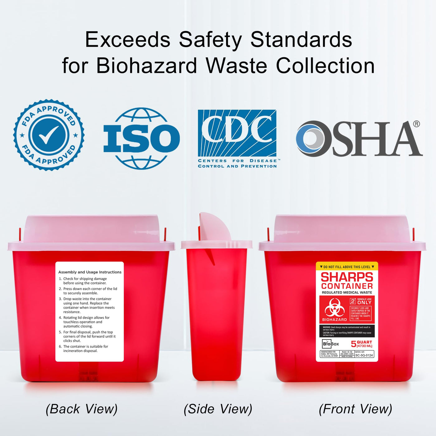 - Compliance and Safety: Meets OSHA and EPA standards for biohazard waste handling, complete with instructions for responsible disposal.