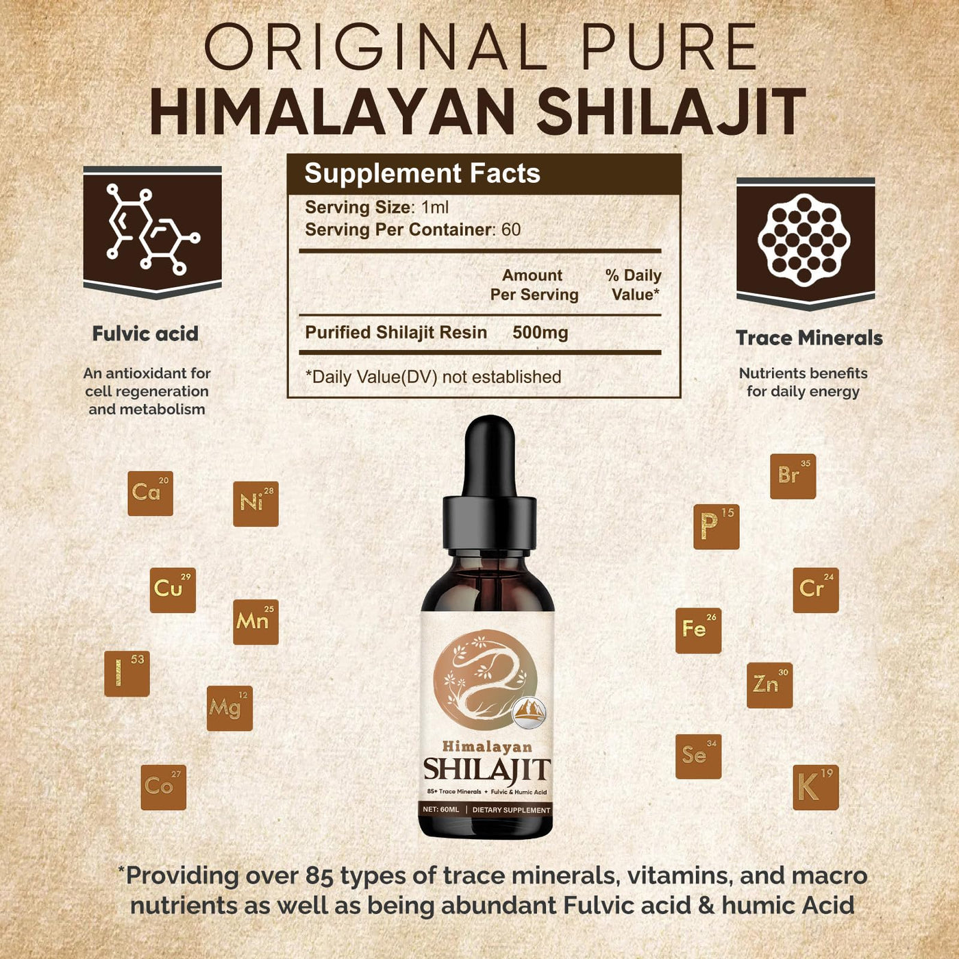- RICH IN TRACE ELEMENTS: Shilajit contains virtually all elements, including over 85 trace elements such as fulvic acid and humic acid, which have antioxidant and rejuvenating properties and promote mineral absorption