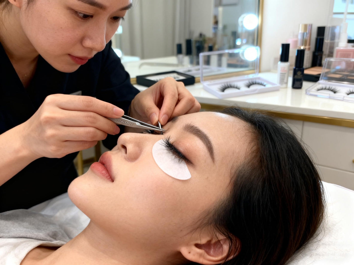 SHINING CROWN Tweezers for Eyelash Extension Straight and Curved 2PCS Set 03 Straight+Curved