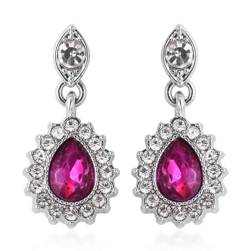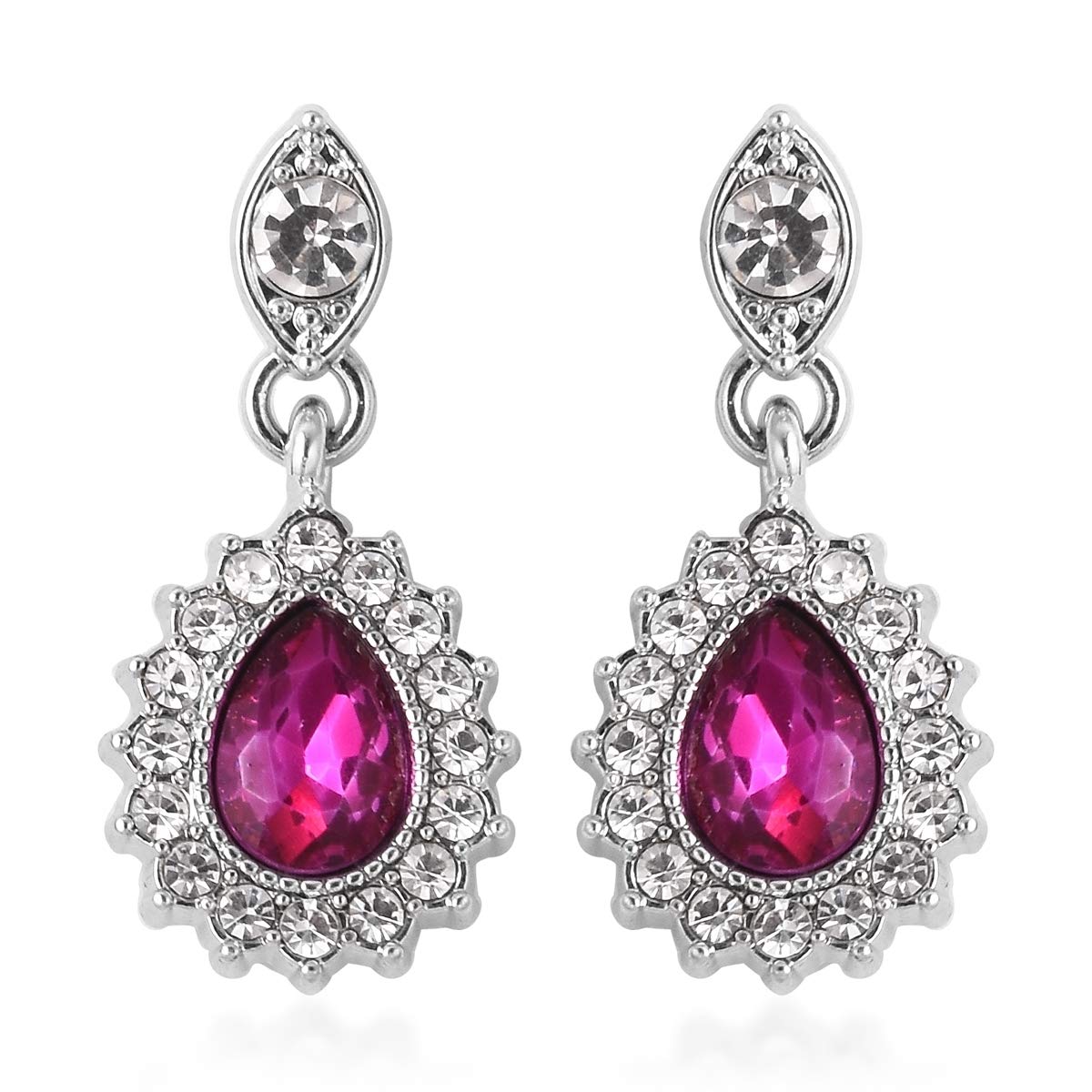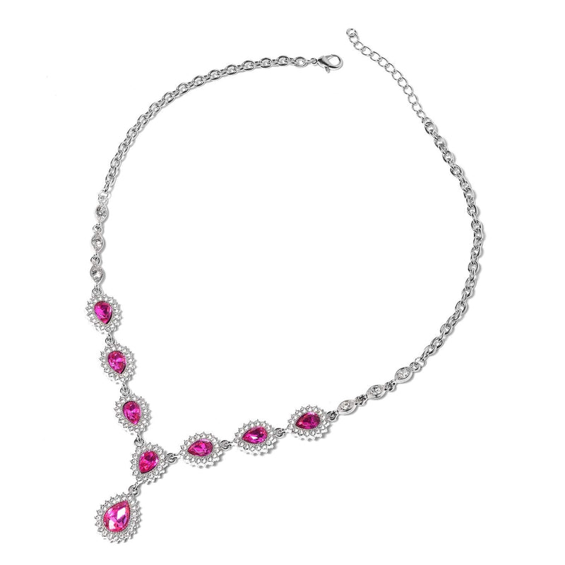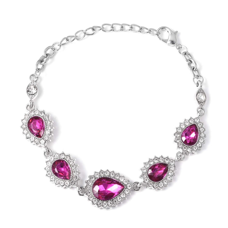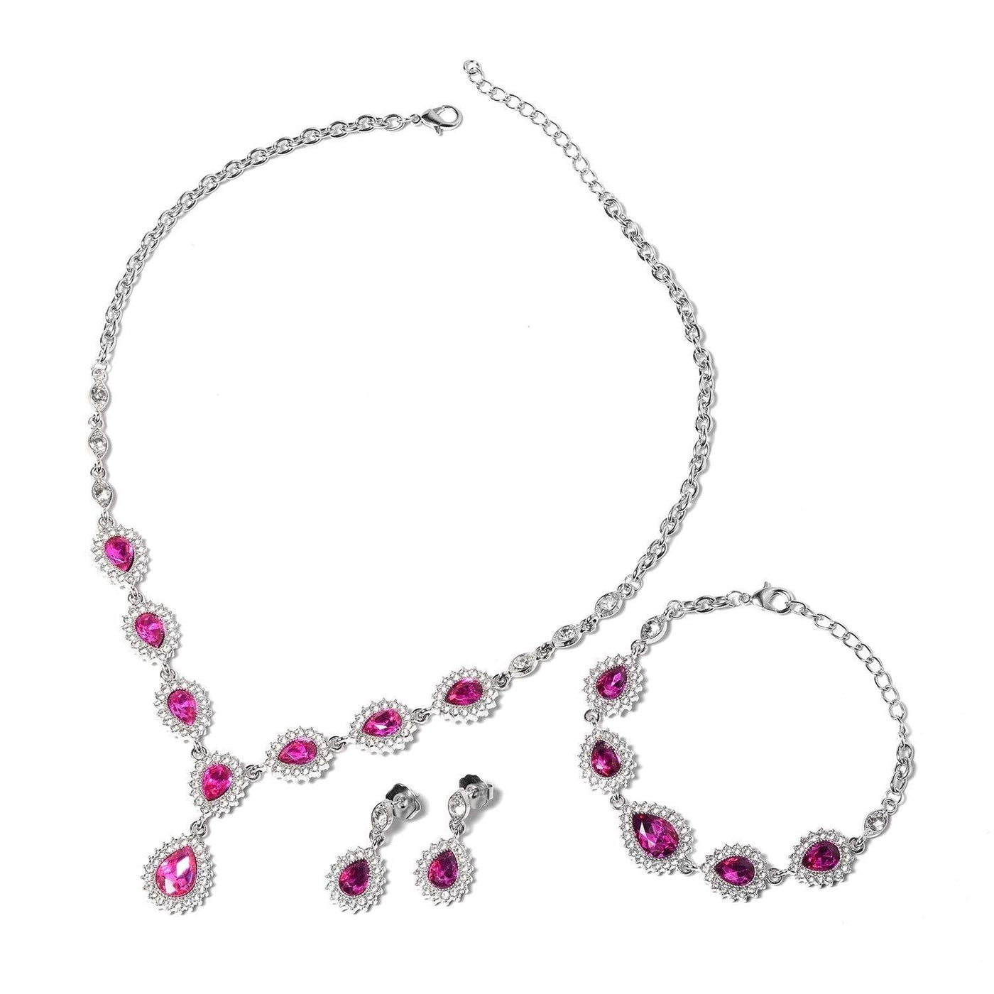 Shop LC Delivering Joy Bridal Statement Necklace Glass Crystal Earrings Bracelet Wedding Fashion Jewelry Set for Women 20" 7.5" Pink