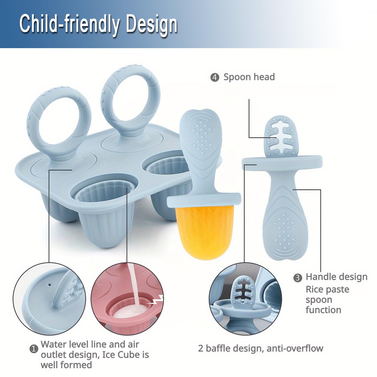 Silicone Popsicle Molds, Mini Breastmilk Popsicle Molds with Sticks for Baby, Frozen Breast Milk Teether Popsicle Maker Ice Pop Molds for Infant Feeding Spoon (1Set-Blue)