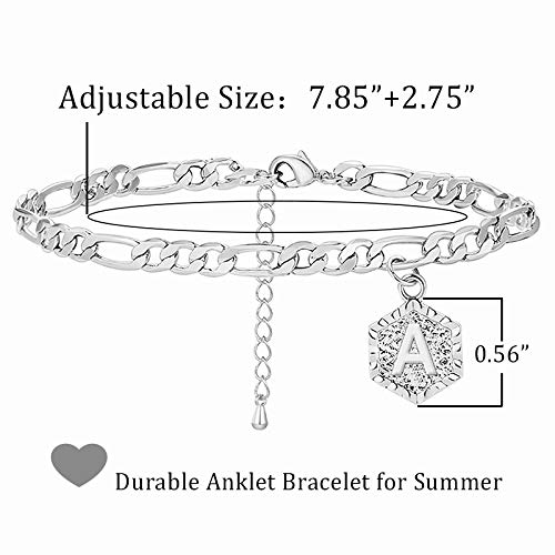 Silver Initial Anklets for Women,Cuban Chain Ankle Bracelets for Women Initial Letter Barefoot Jewelry