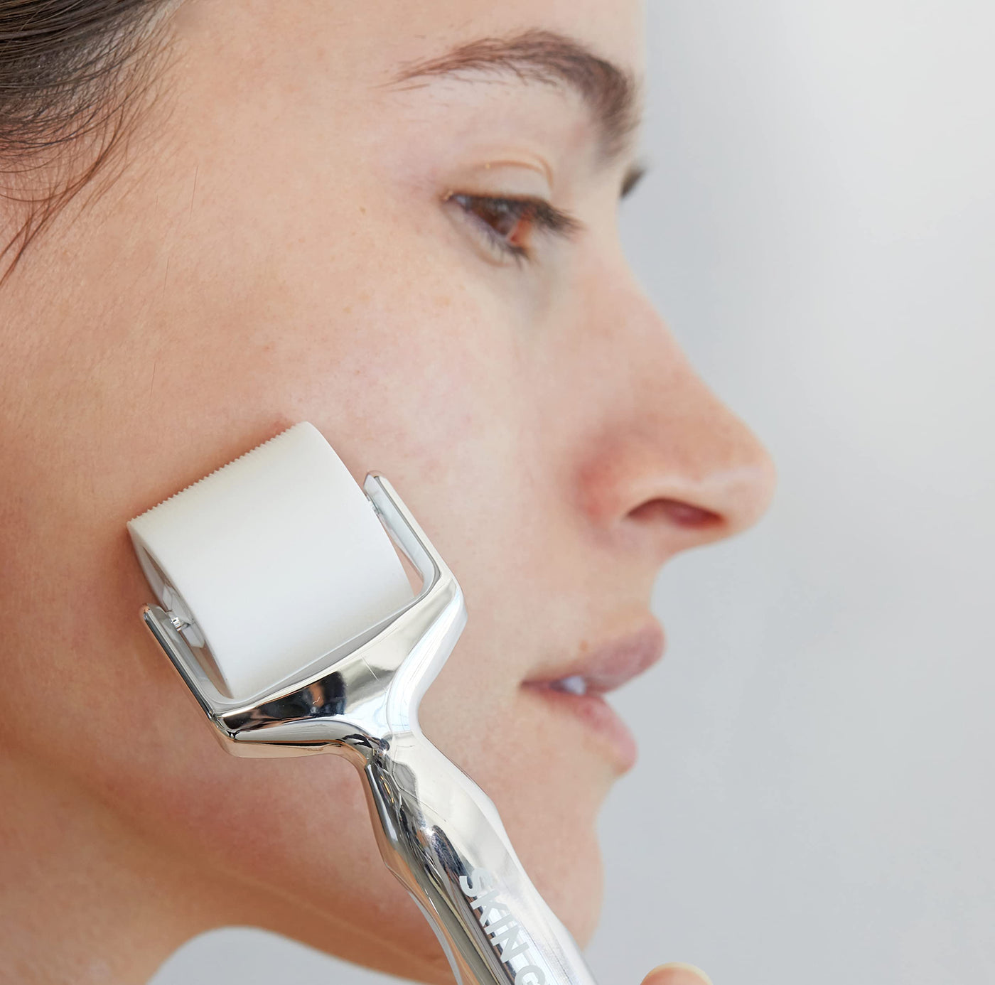 SKIN GYM Microfusion Dissolving Hyaluronic Roller, Non-Invasive Microneedling Alternative, 3000+ Hyaluronic Acid & Peptide Tips for Smooth, Supple, Youthful Skin, Includes 1 Tool + 3 Roller Heads
