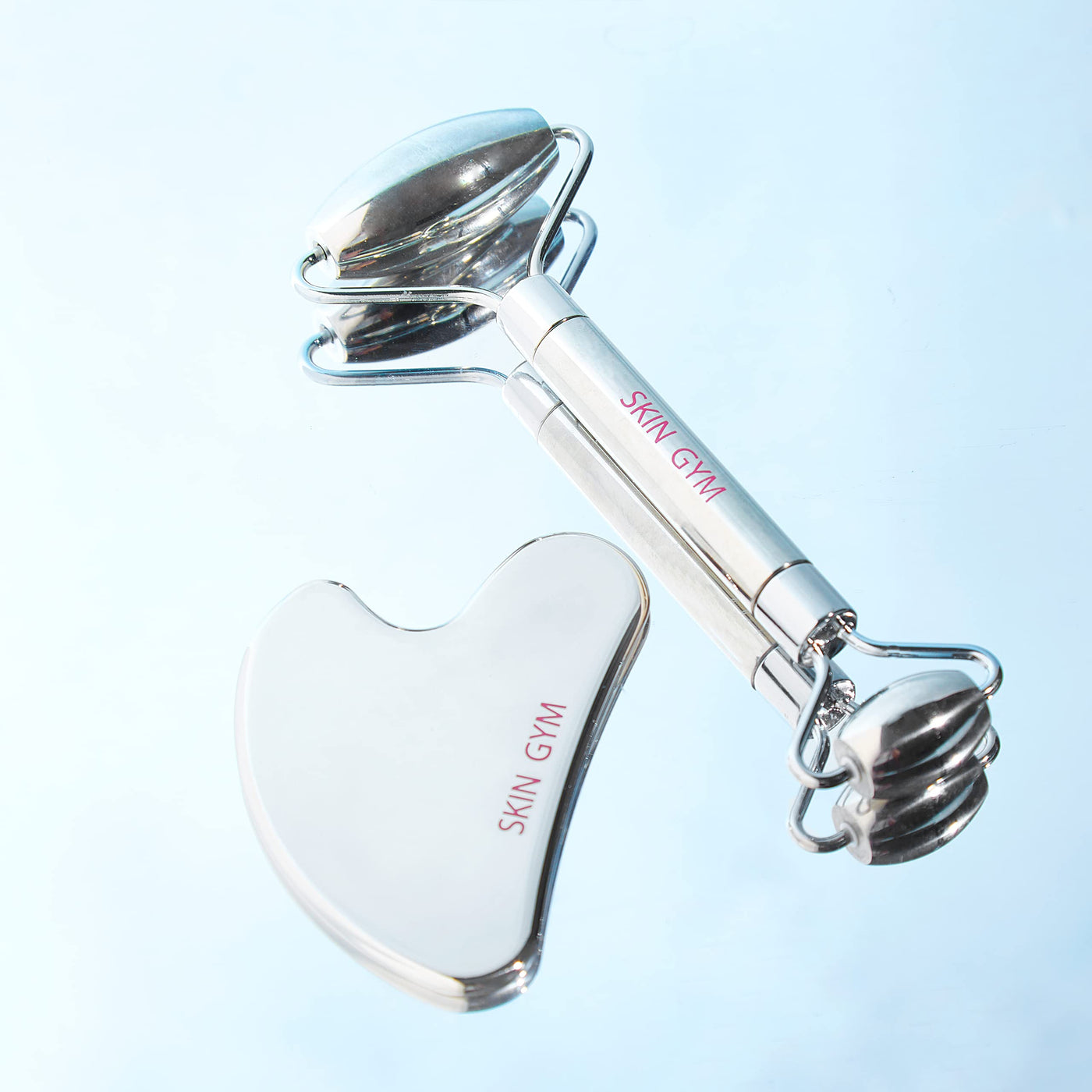 Introducing the Skin Gym Face Rollers and Gua Sha Massage Tools - the ultimate skincare tools for elevating your face care routine to new heights. Experience the transformative power of our carefully crafted face sculpting tool duo that will leave your skin looking radiant, revitalized, and rejuvenated. The facial massager tool is expertly designed to reduce the appearance of wrinkles and fine lines, giving you a more youthful and revitalized complexion. With gentle, outward strokes, the gua sha roller enhances circulation and promotes lymphatic flow, resulting in brighter, healthier-looking skin. The smaller end of the gua sha stone targets delicate areas, providing a soothing massage that helps alleviate puffiness and tension. But it's not just about achieving flawless skin - our set offers more. Embrace a moment of self care as you indulge in a soothing and relaxing facial massage. The gentle rolling and scraping motions of the guasha tool not only enhance your natural beauty but also promote a sense of tranquility and well-being, allowing you to unwind and recharge. Shop Skin Gym Beauty Tools + Accessories now! Brand Story Skin Gym is an innovative beauty brand that fits right into your active lifestyle, drawing on ancient beauty techniques to provide modern beauty tools